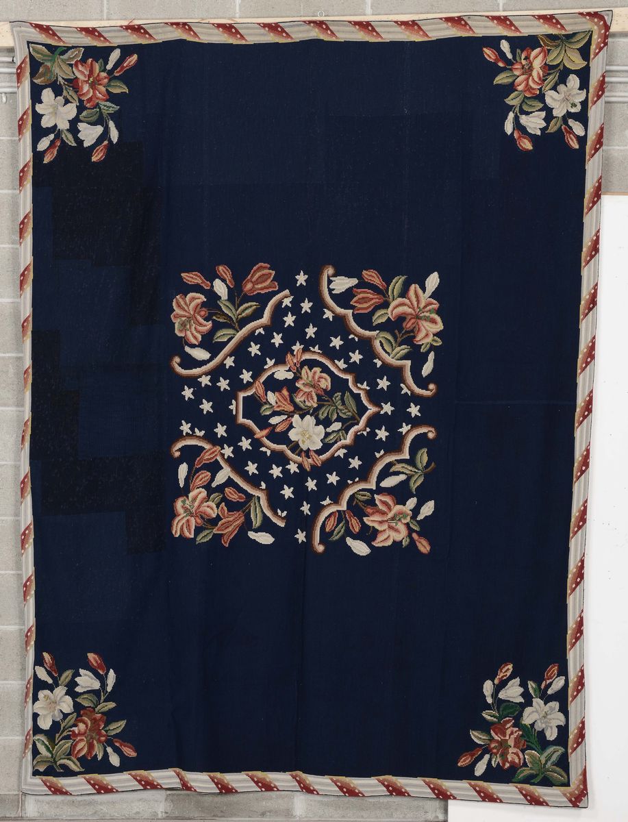 fondo blu con decoro floreale nel centro e negli angoli cm 284x220