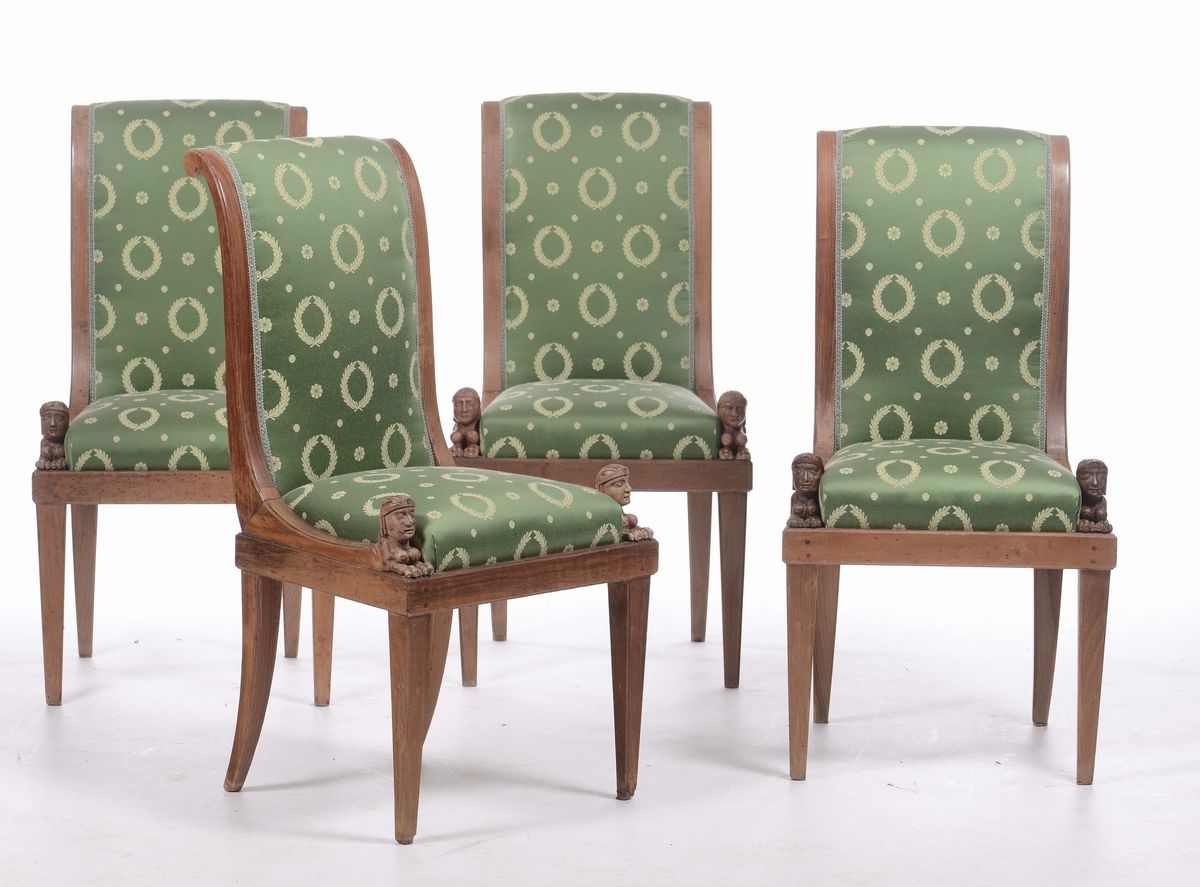 Quattro sedie in noce, XIX secolo