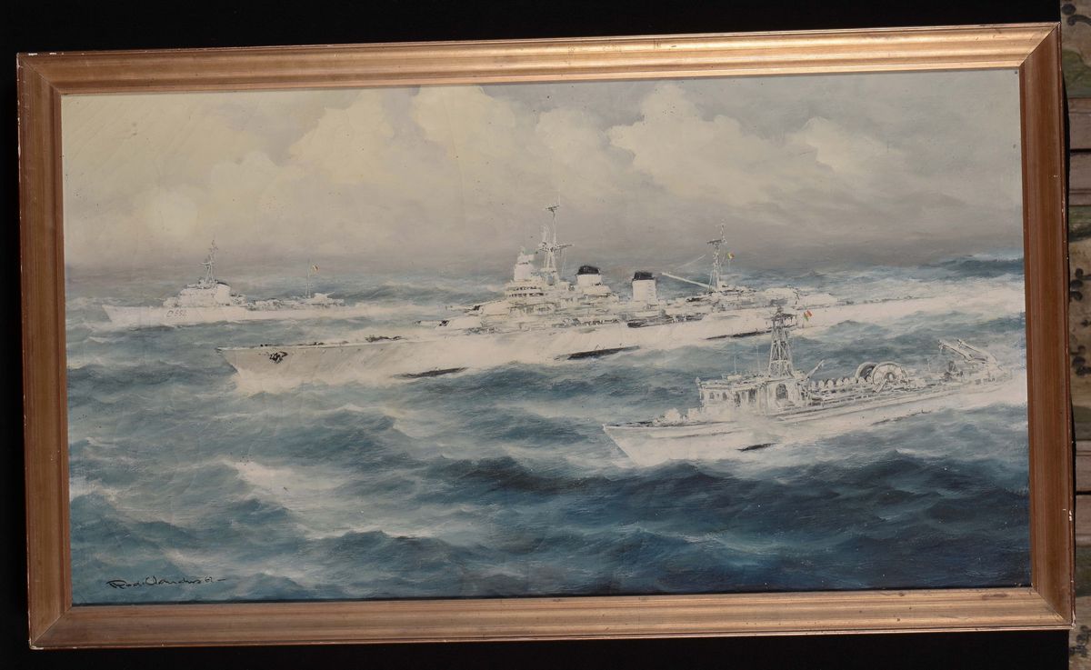 Rudolf Claudus (1893-1964) Marina con navi da guerra