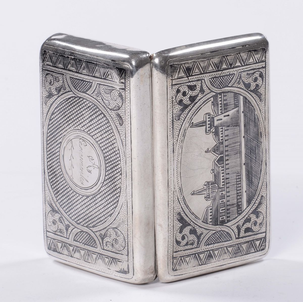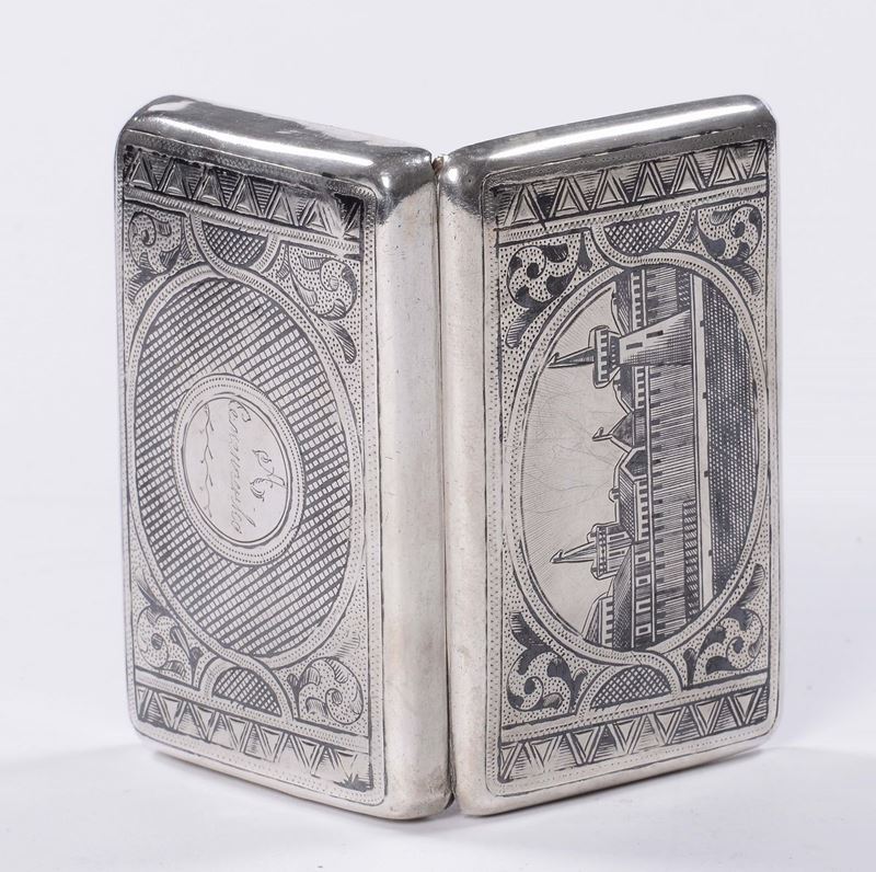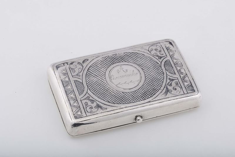 Scatola in argento niellato e inciso, Russia XIX secolo