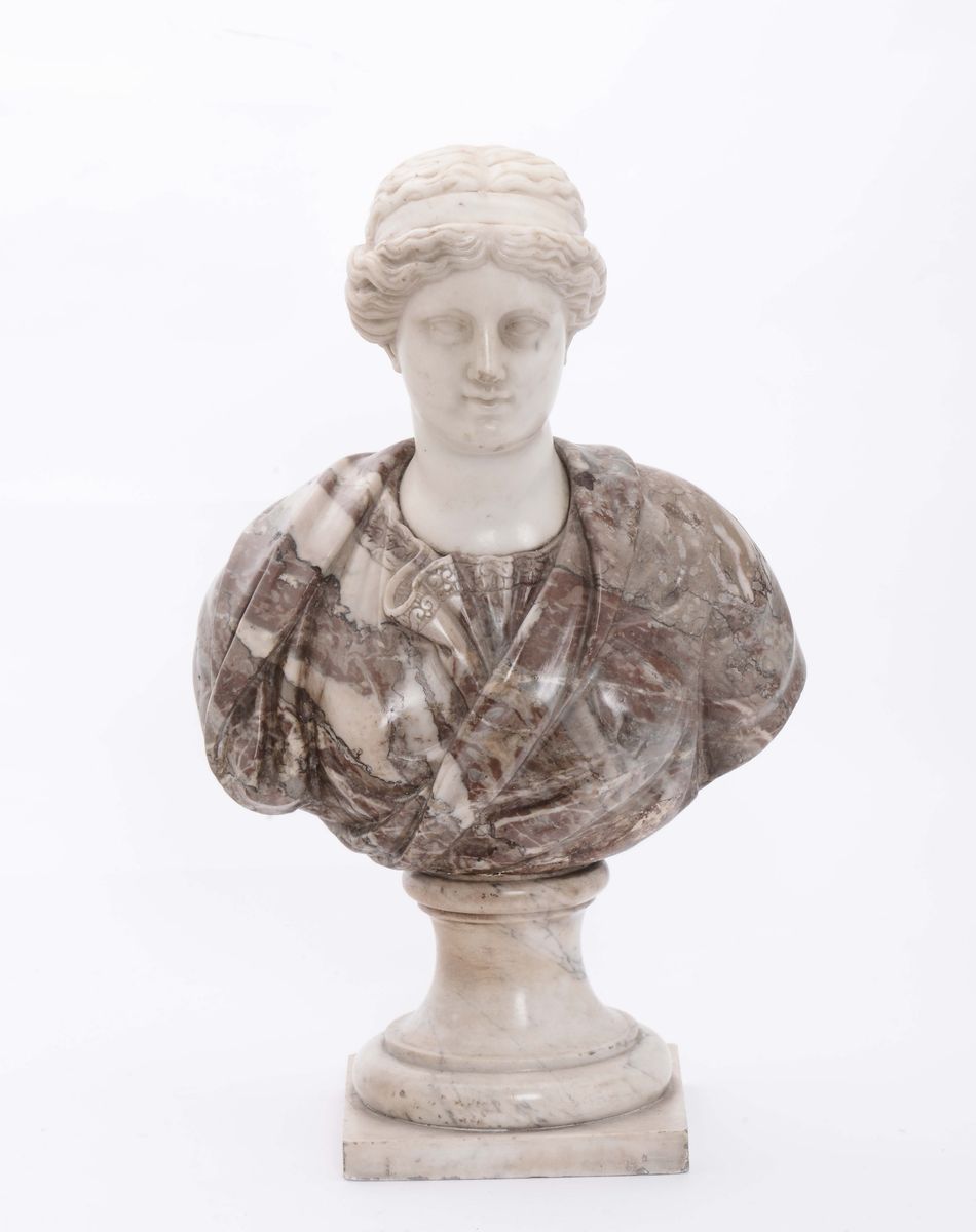 Scultura in marmo bianco e breccia raffigurante busto femminile, XIX-XX secolo
