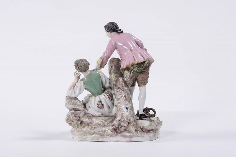 Sculturina in porcellana raffigurante scena galante, XX secolo