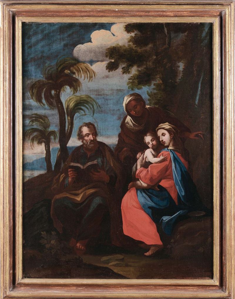 Scuola Italiana del XVII secolo Matrimonio della Vergine Riposo durante la fuga in Egitto