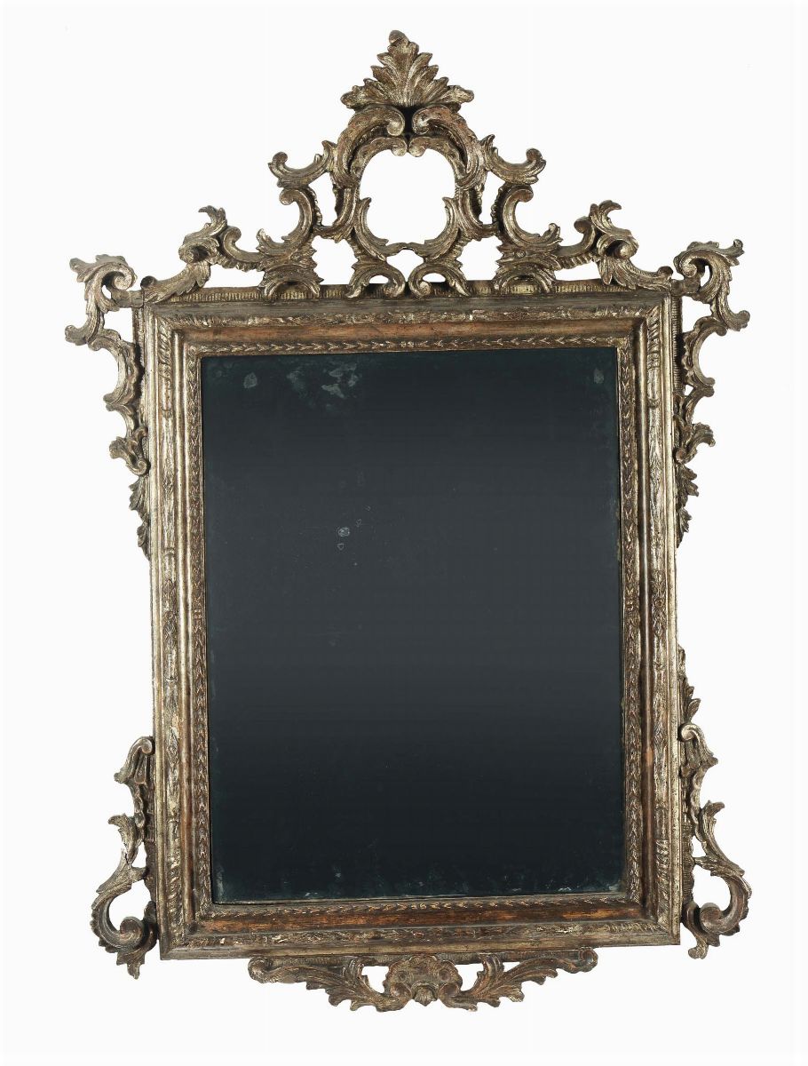 Specchiera Luigi XV in legno dorato a mecca, XVIII-XIX secolo