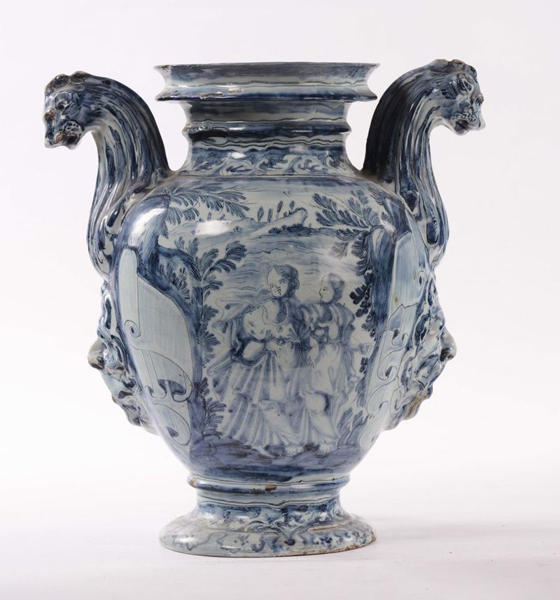 Stagnone di farmacia in maiolica, Albisola, seconda metà del XVII secolo