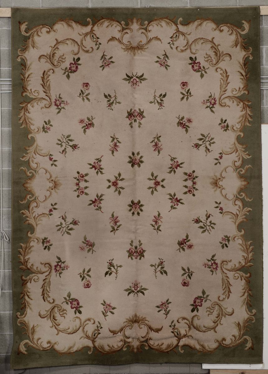 fondo beige con decoro floreale, bordura verde cm 350x250