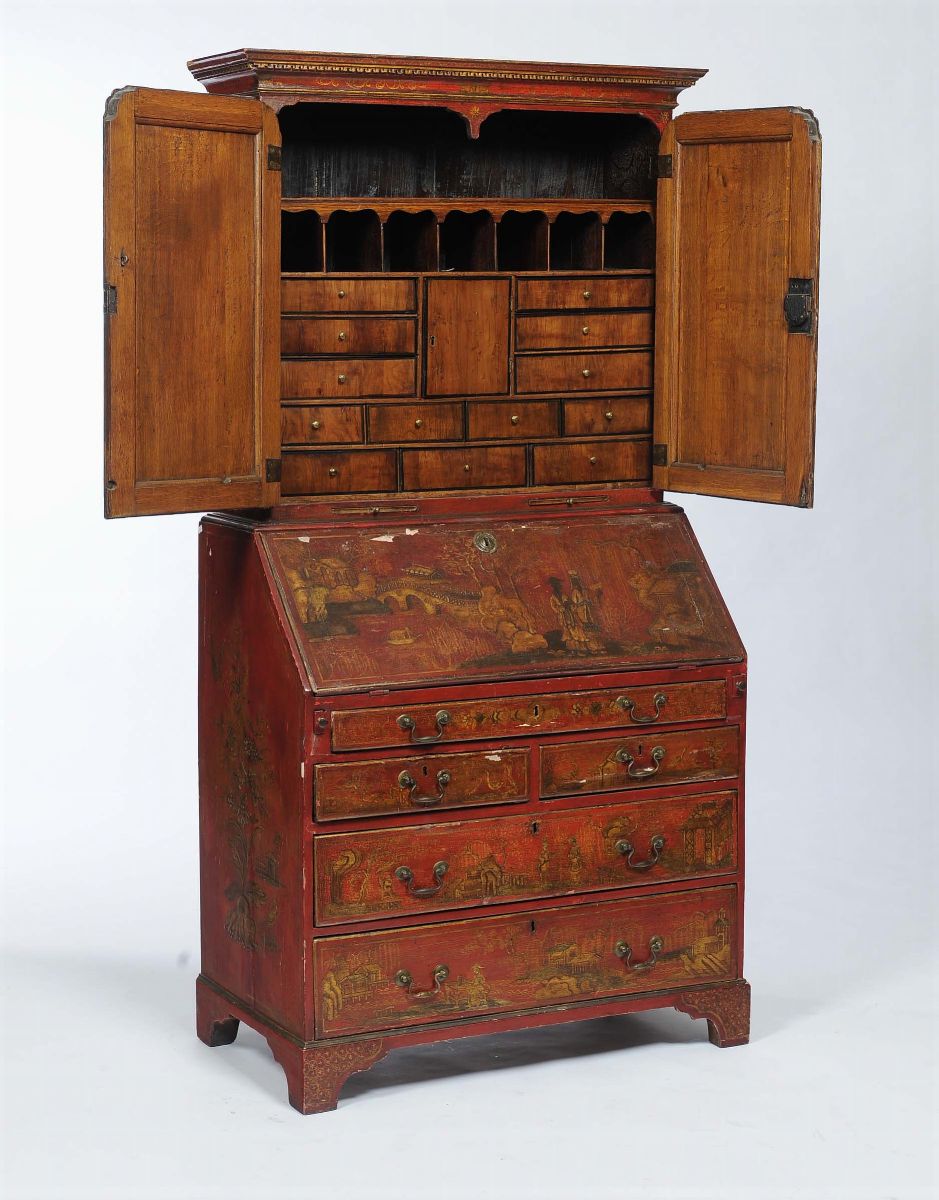 alzata a due ante con cassettini e vani a giorno all’interno (restauri e difetti)