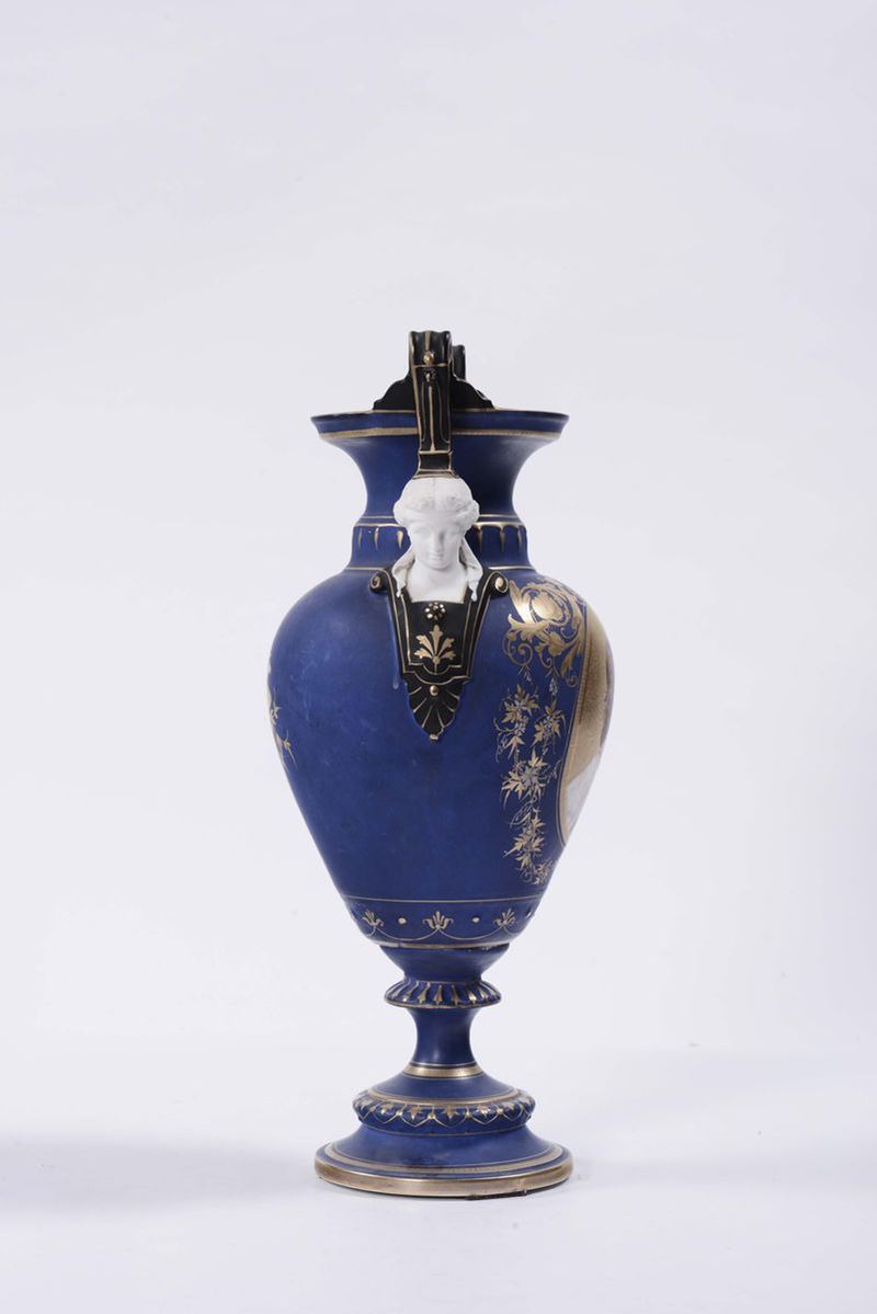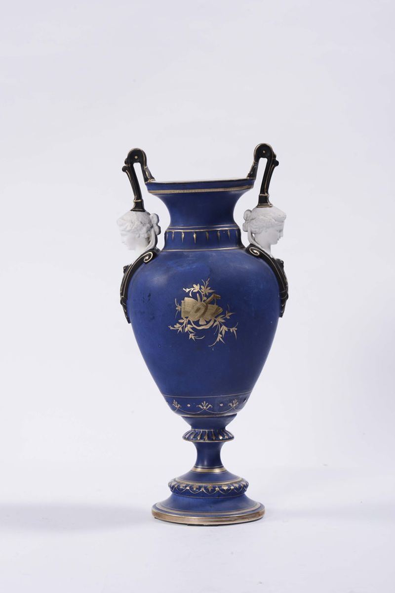 Vaso in ceramica a fondo blu, XX secolo