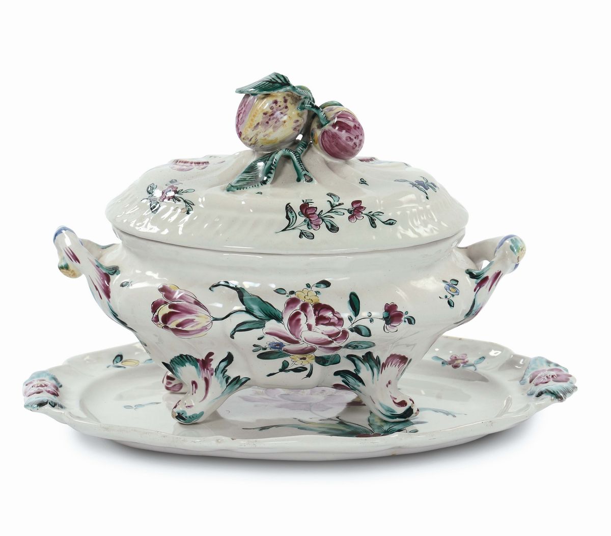 Zuppiera con piatto in maiolica con decoro alla rosa, Lodi XVIII secolo