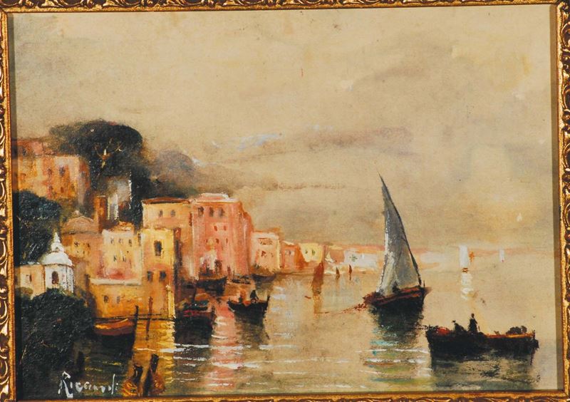 Oscar Ricciardi (1864-1935), attribuito a Veduta costiera