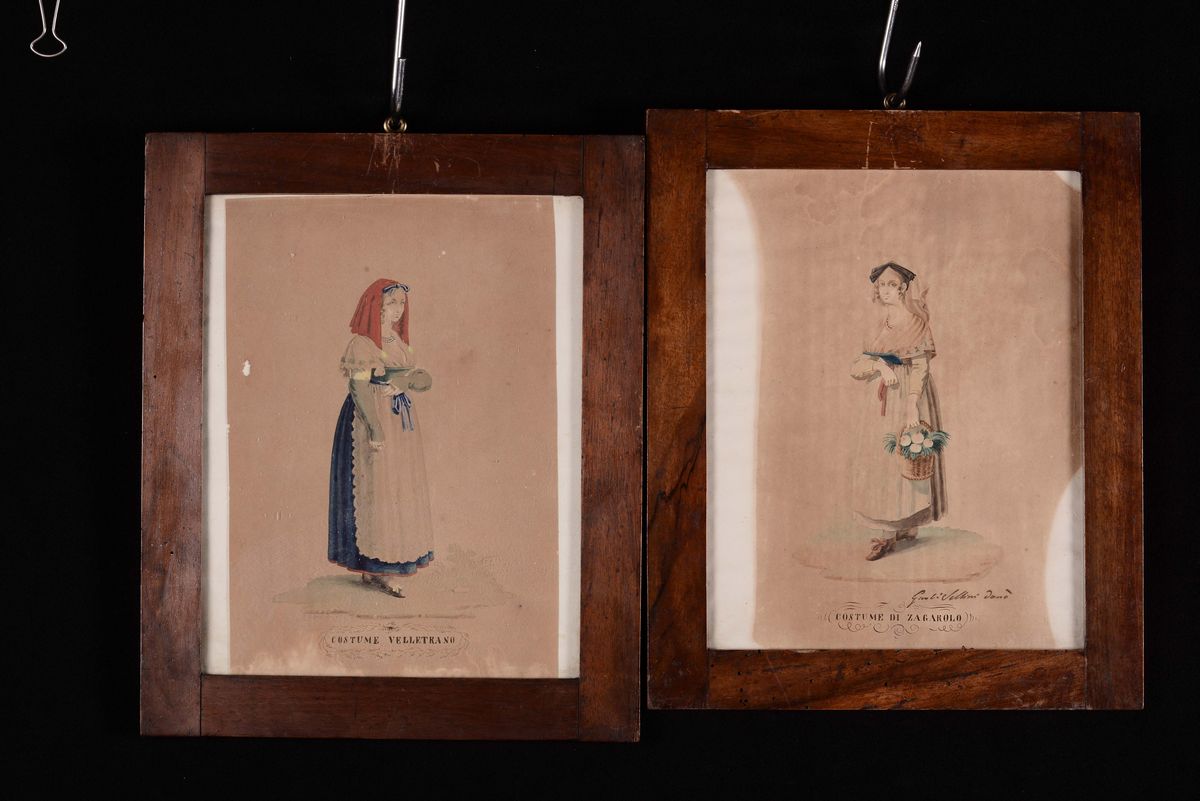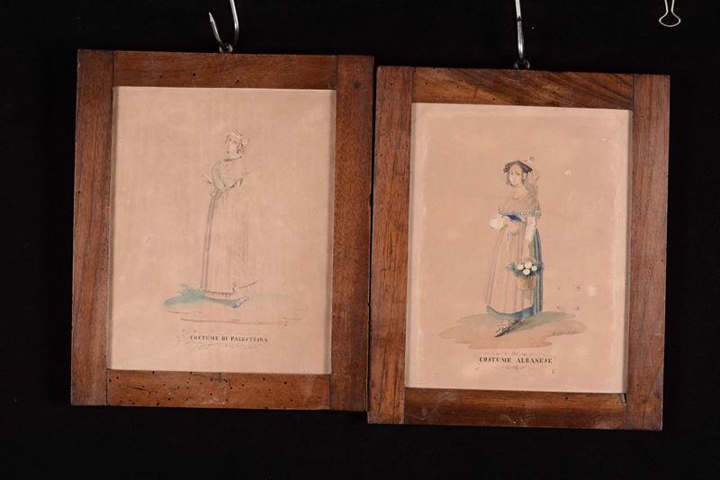 Otto acquarelli raffiguranti costumi laziali, firmati G. Valenti 1842