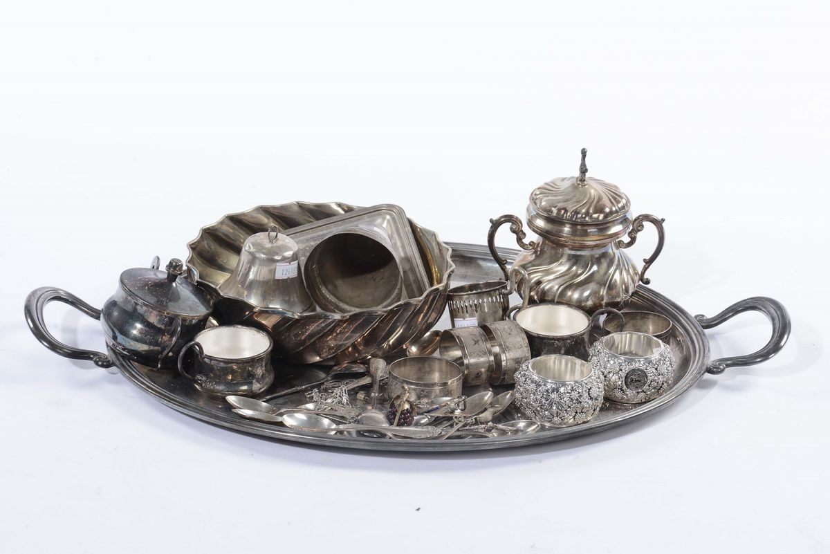 Lotto di oggetti in argento e metallo argentato