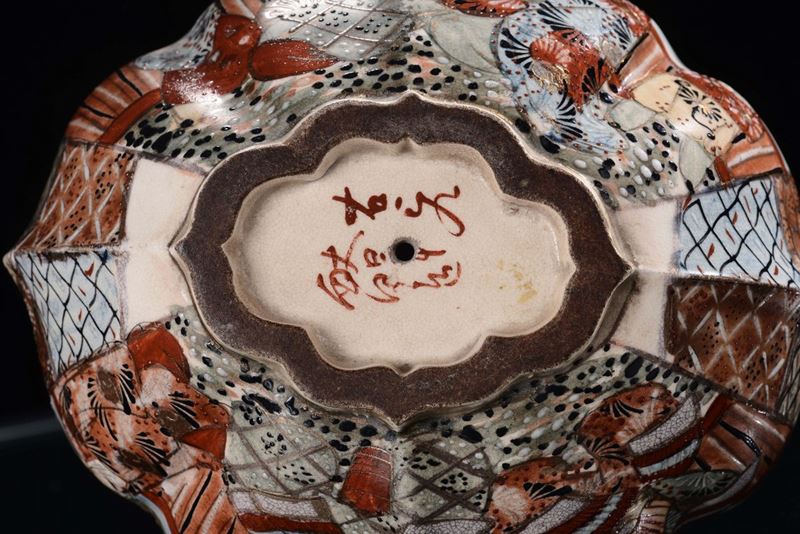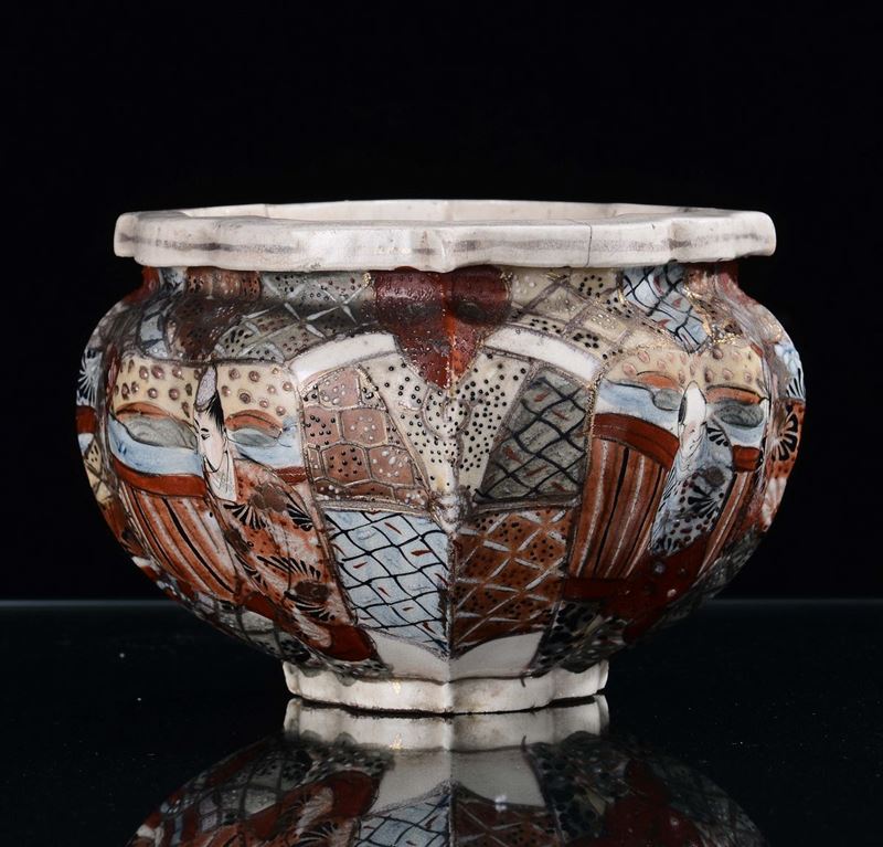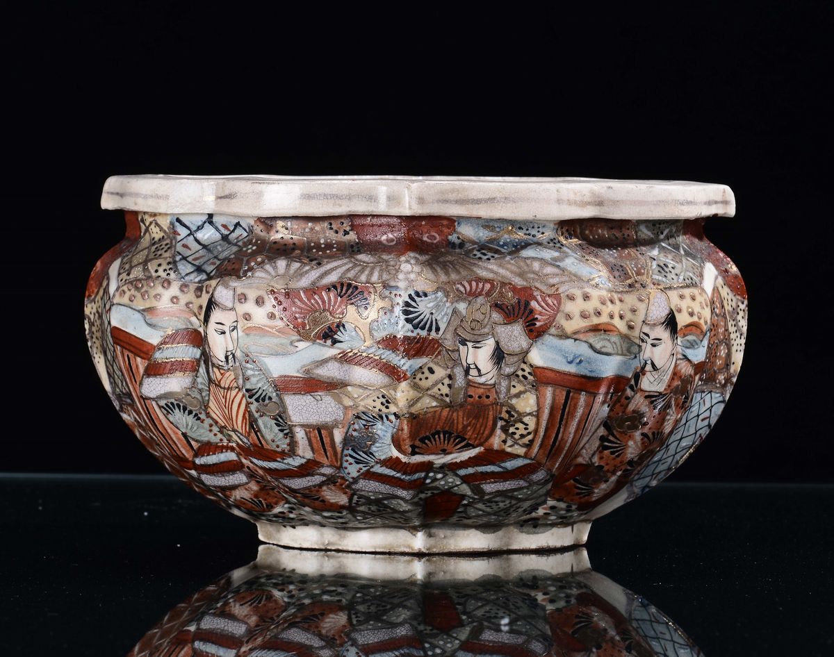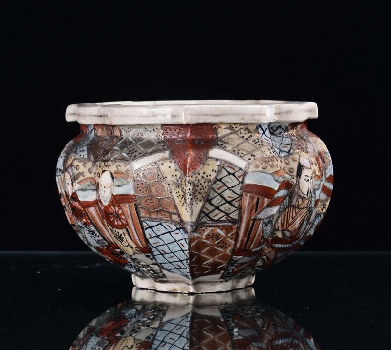Cache-pot in ceramica policroma con figure orientale, Giappone Satzuma