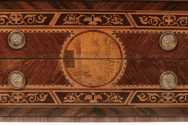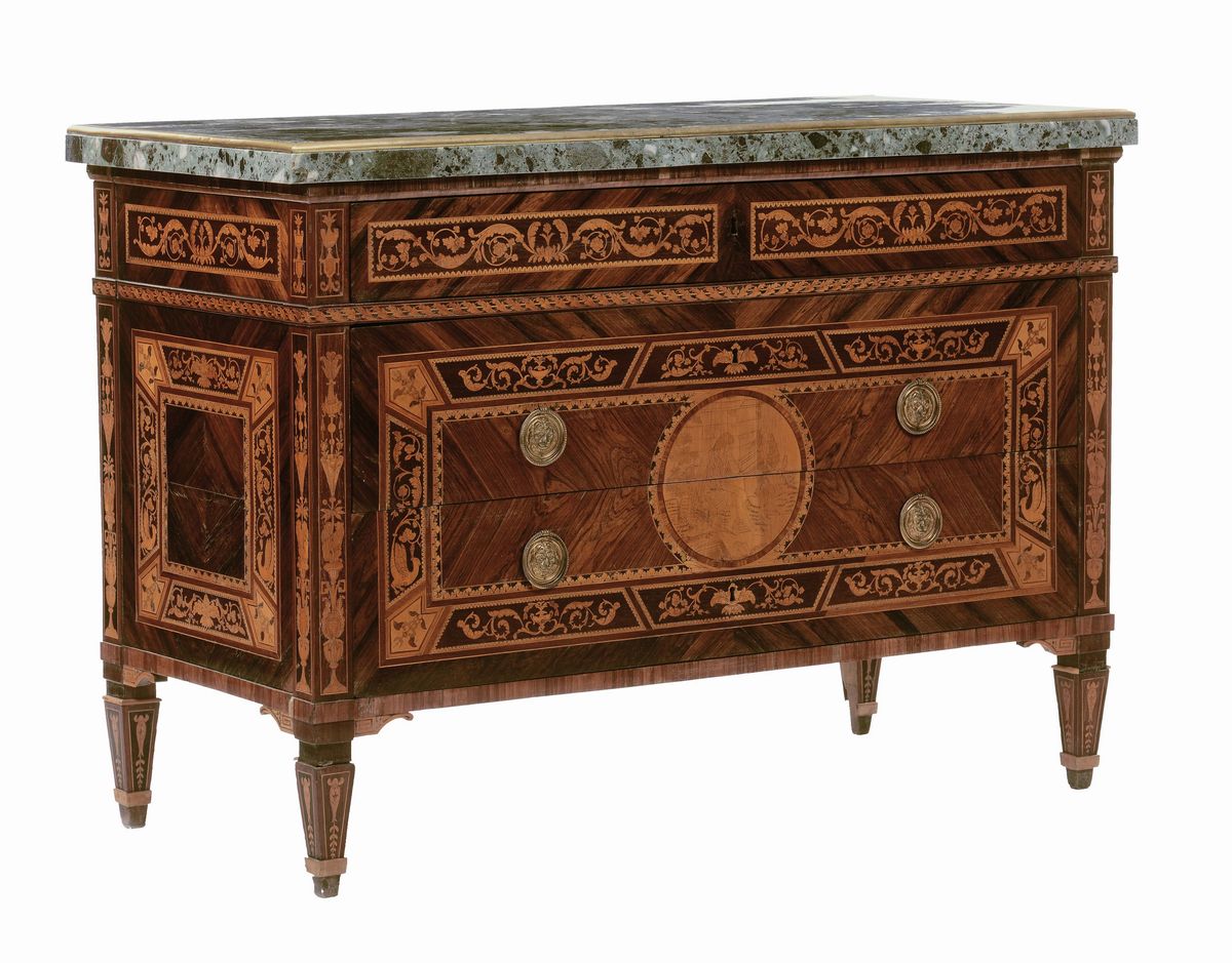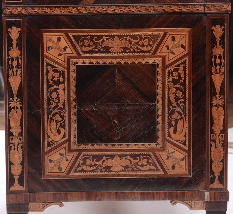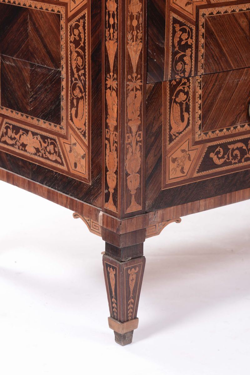 Coppia di comò intarsiati a marqueterie alla Maniera di Giuseppe Maggiolini, Milano inizi XIX secolo