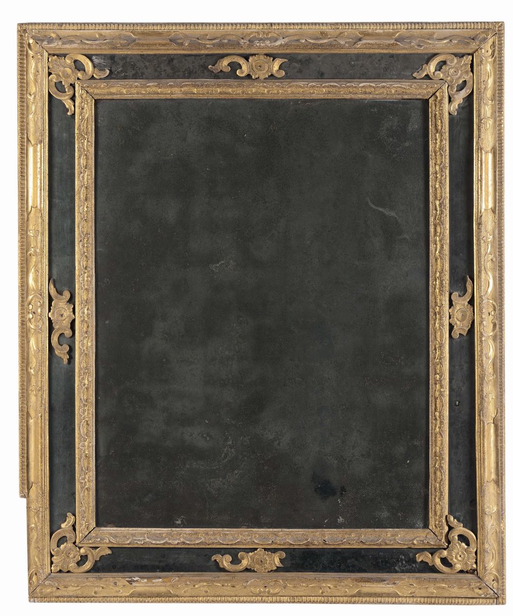 decoro a volute ed elementi floreali, specchi originali al mercurio, cm 126x106 (mancanze)