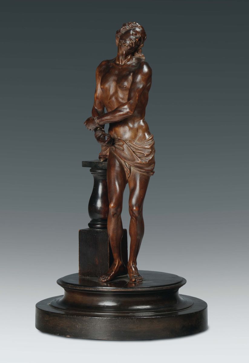 Cristo alla colonna in legno scolpito, scuola dell'Italia del nord o tedesca del XVII secolo