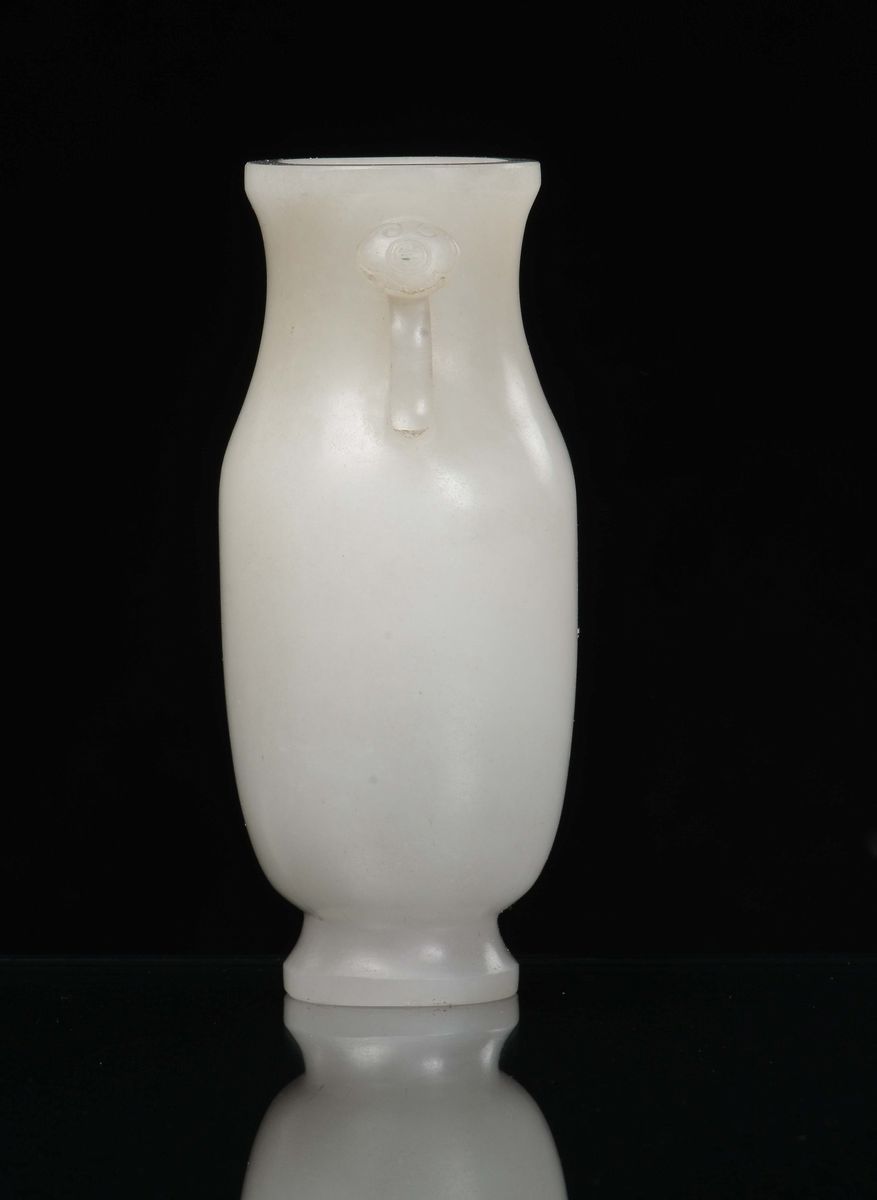 Bel vasetto in giada bianca con anse a forma di ruyi, Cina, Dinastia Qing, epoca Qianlong (1736-1796)