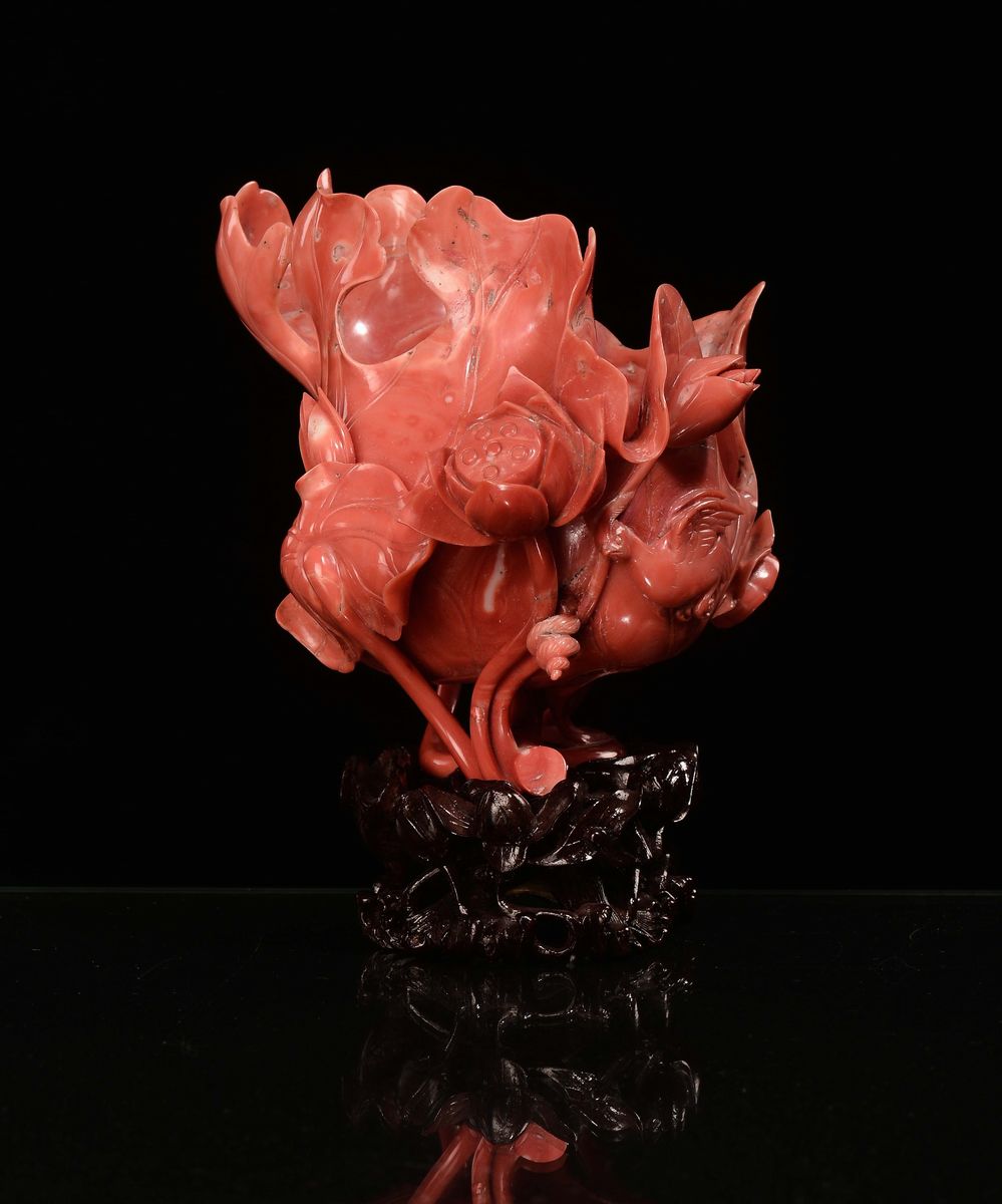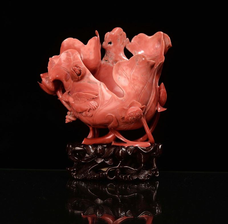 Bocciolo con uccelli in corallo, Cina, Dinastia Qing, fine XIX secolo