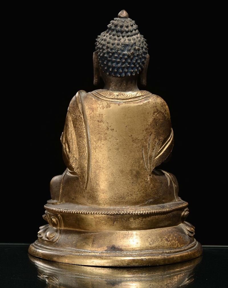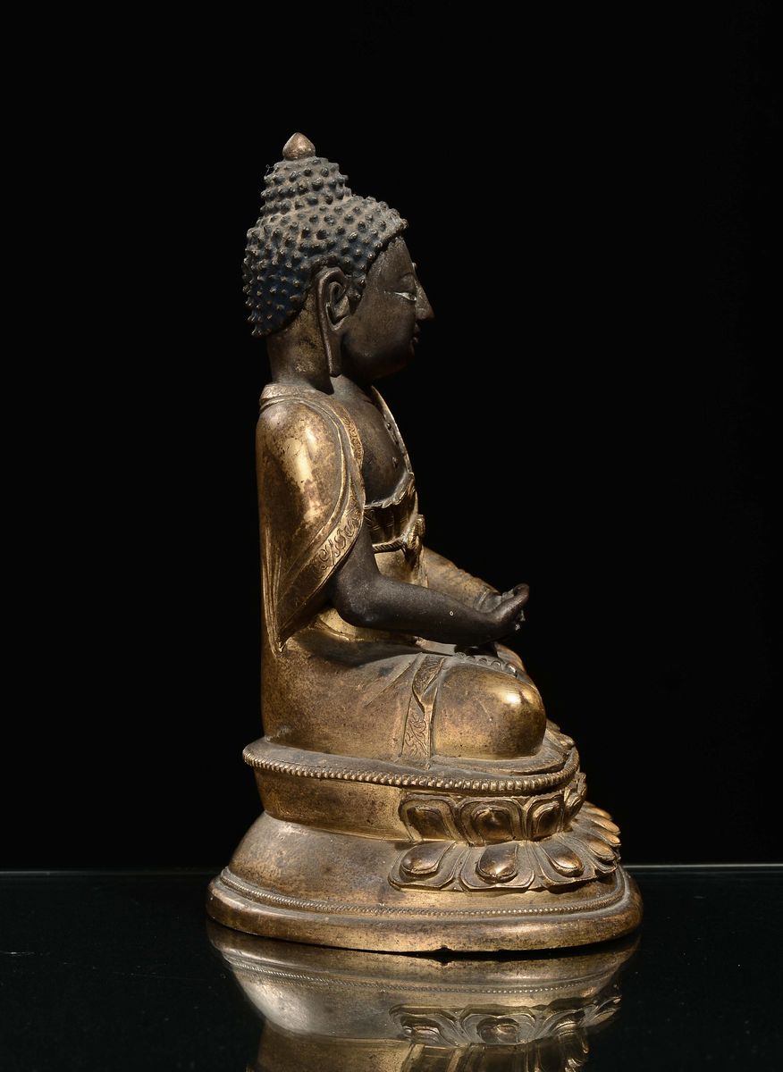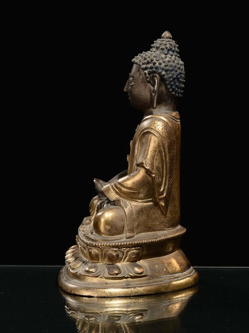 Bronzo dorato raffigurante Sakyamuni, Cina, Dinastia Qing, epoca Kangxi (1662-1722)