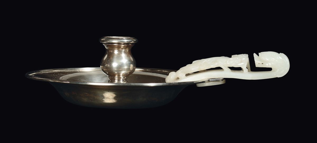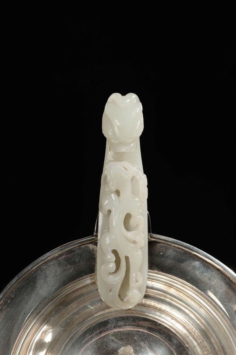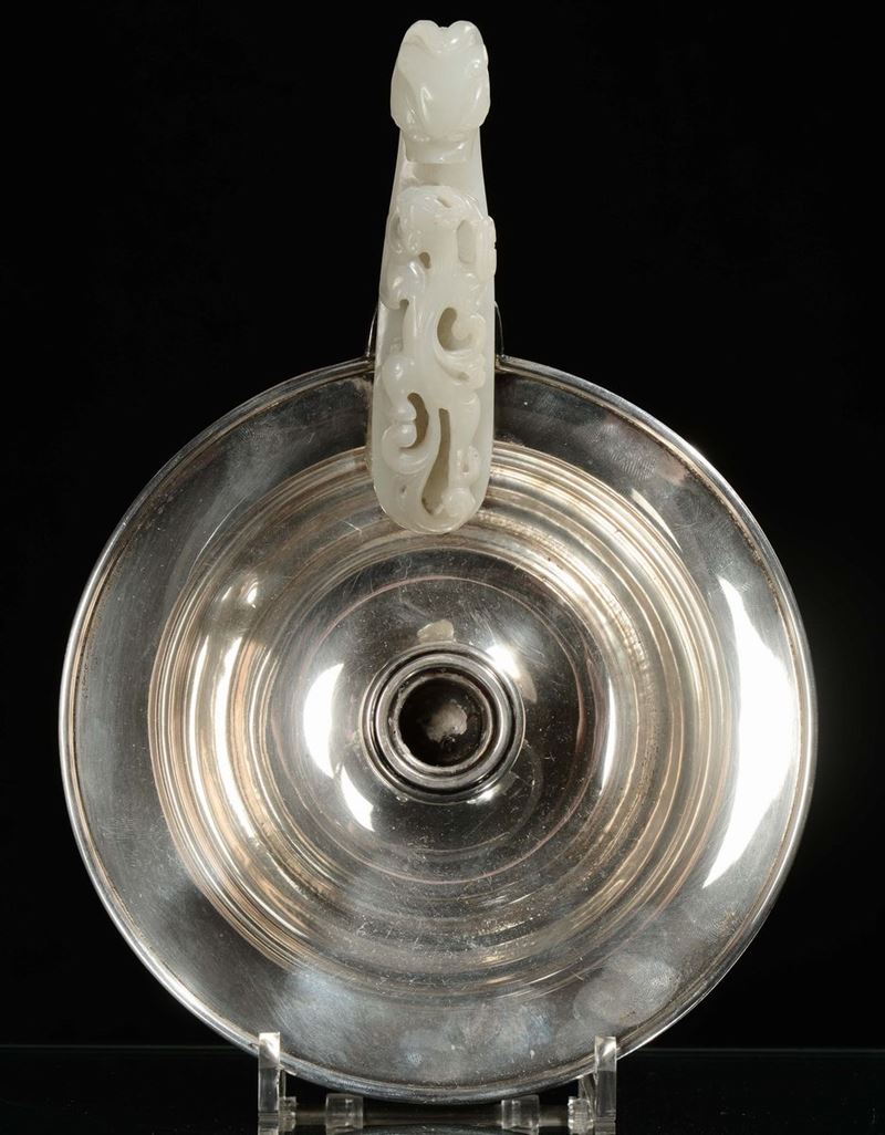 Bugia in argento con fibbia in giada bianca, Cina, Dinastia Qing, epoca Qianlong (1736-1796)