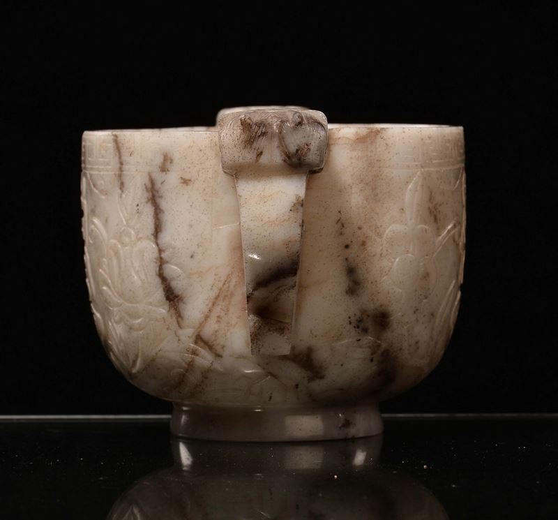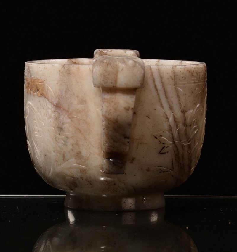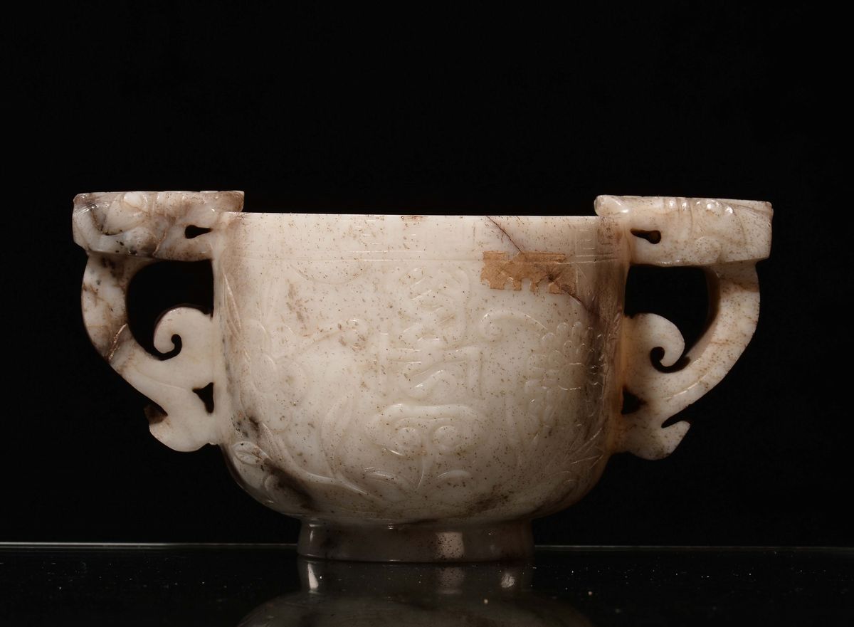 Coppa in giada arcaica con manici a guisa di drago, Cina, Dinastia Ming, XVII secolo