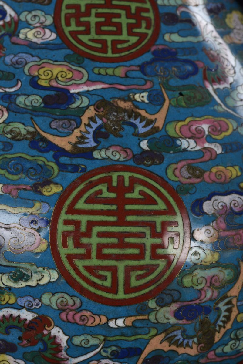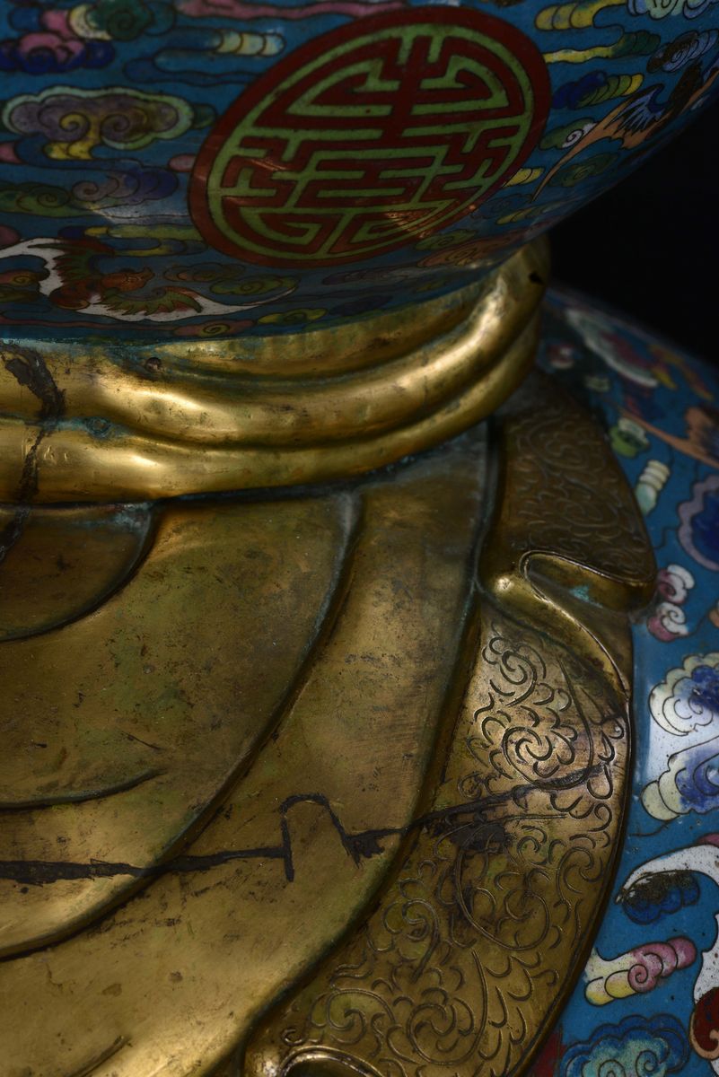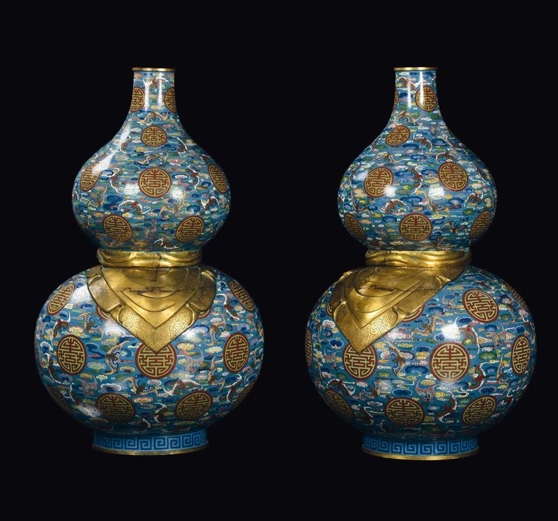 Coppia di grandi vasi a zucca cloisonne e bronzo dorato, Cina, Dinastia Qing, XIX secolo