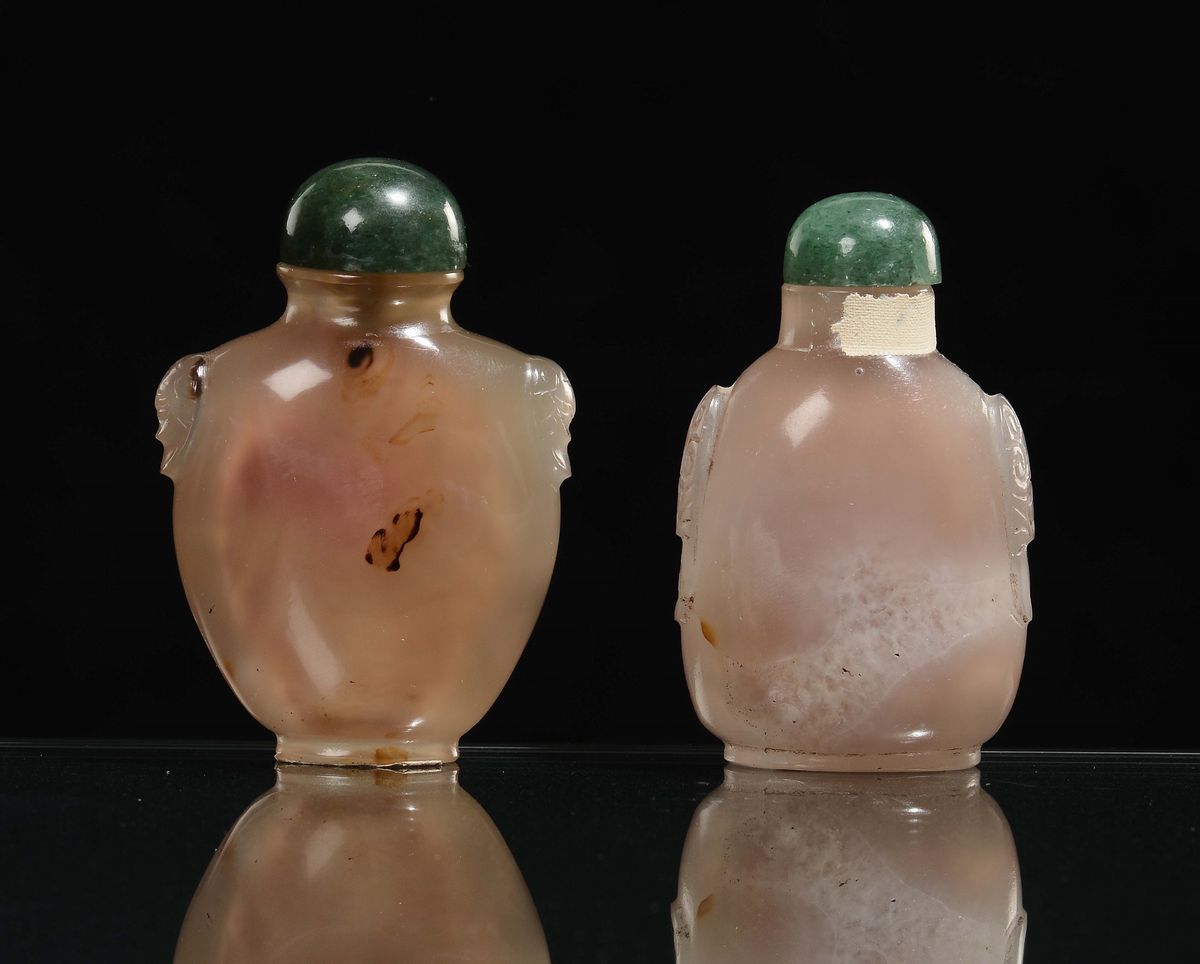Coppia di snuff bottle in agata, Cina, Dinastia Qing, XIX secolo