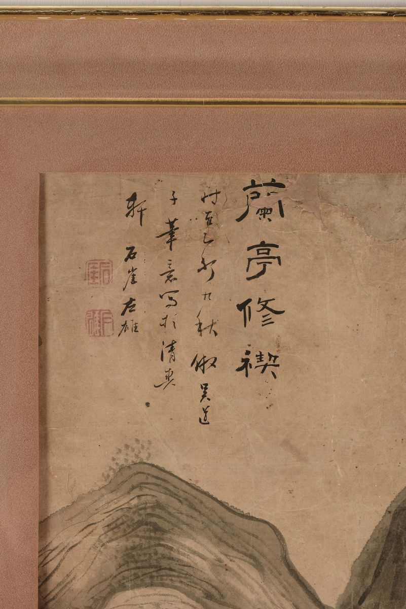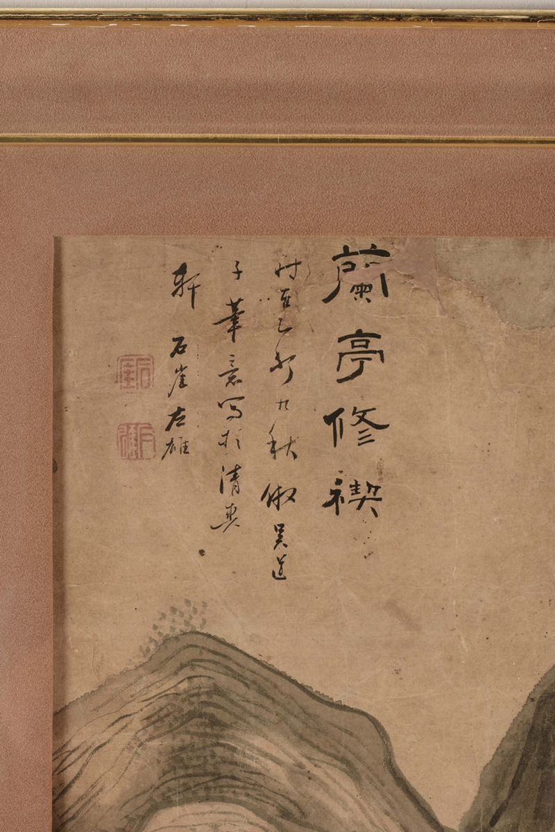 Dipinto su carta con paesaggio montano e piccola iscrizione, Cina, Dinastia Qing, XIX secolo