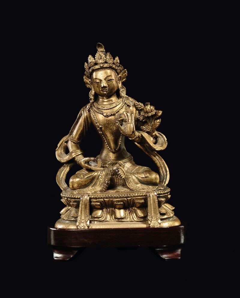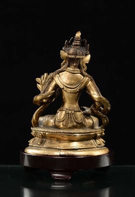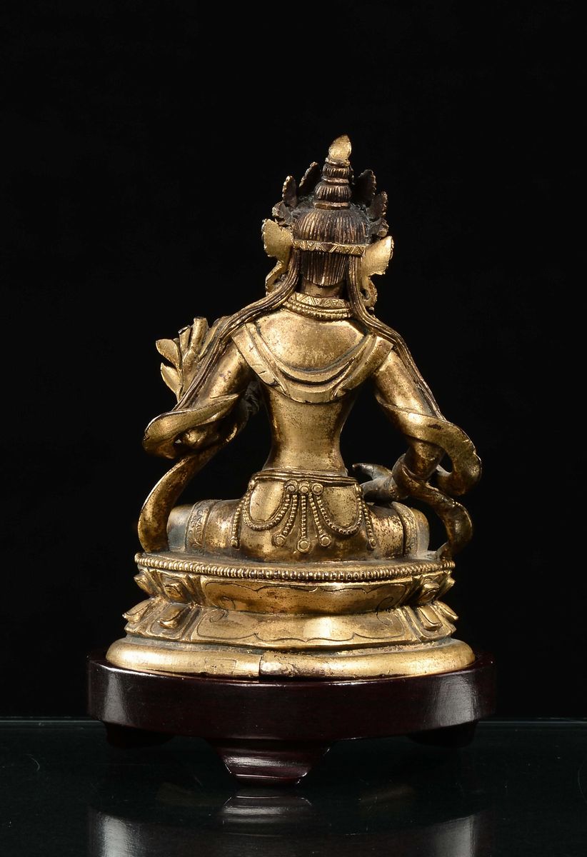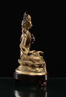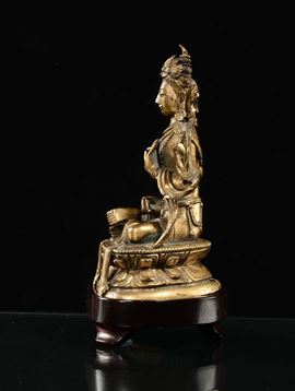Figura di Avalokitesvara in bronzo dorato, Cina, Dinastia Qing, XVIII secolo