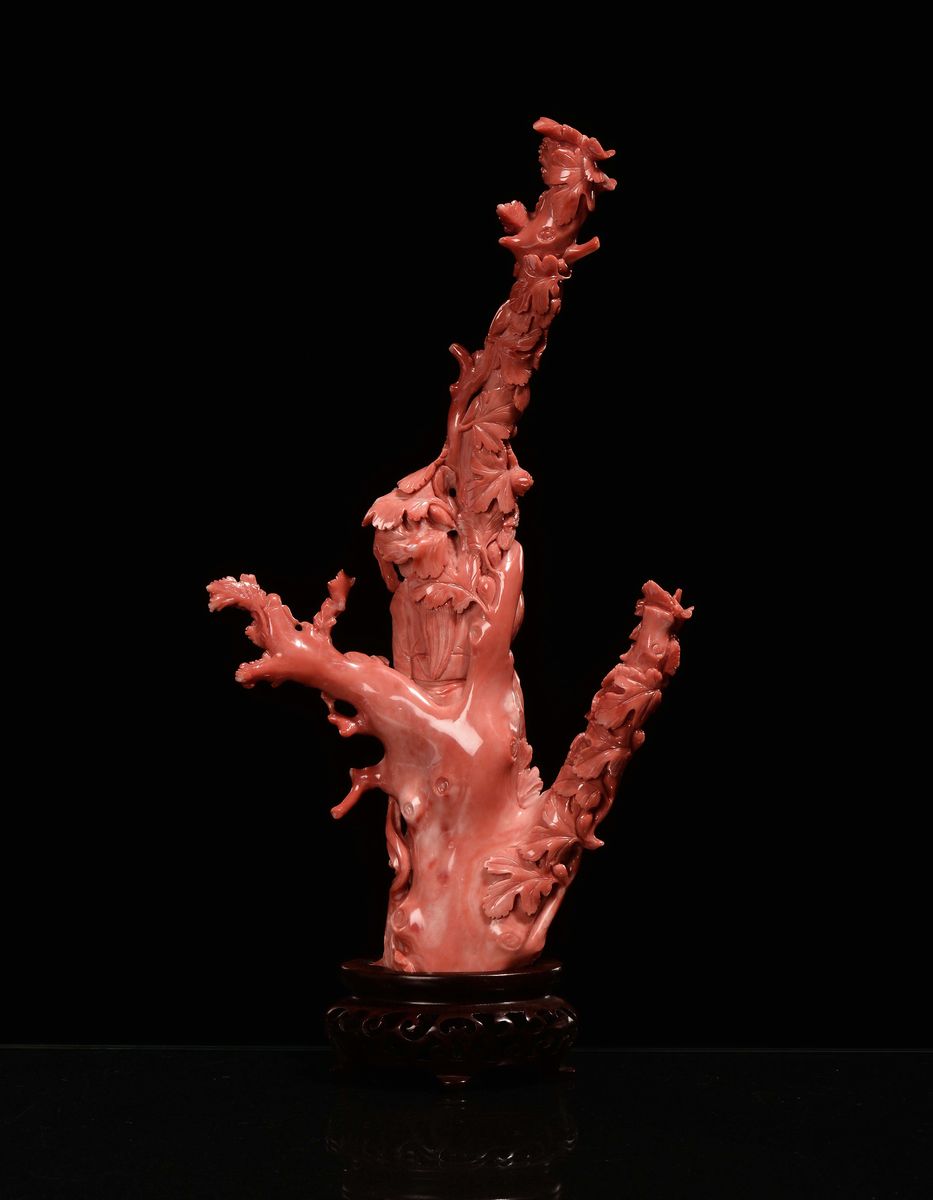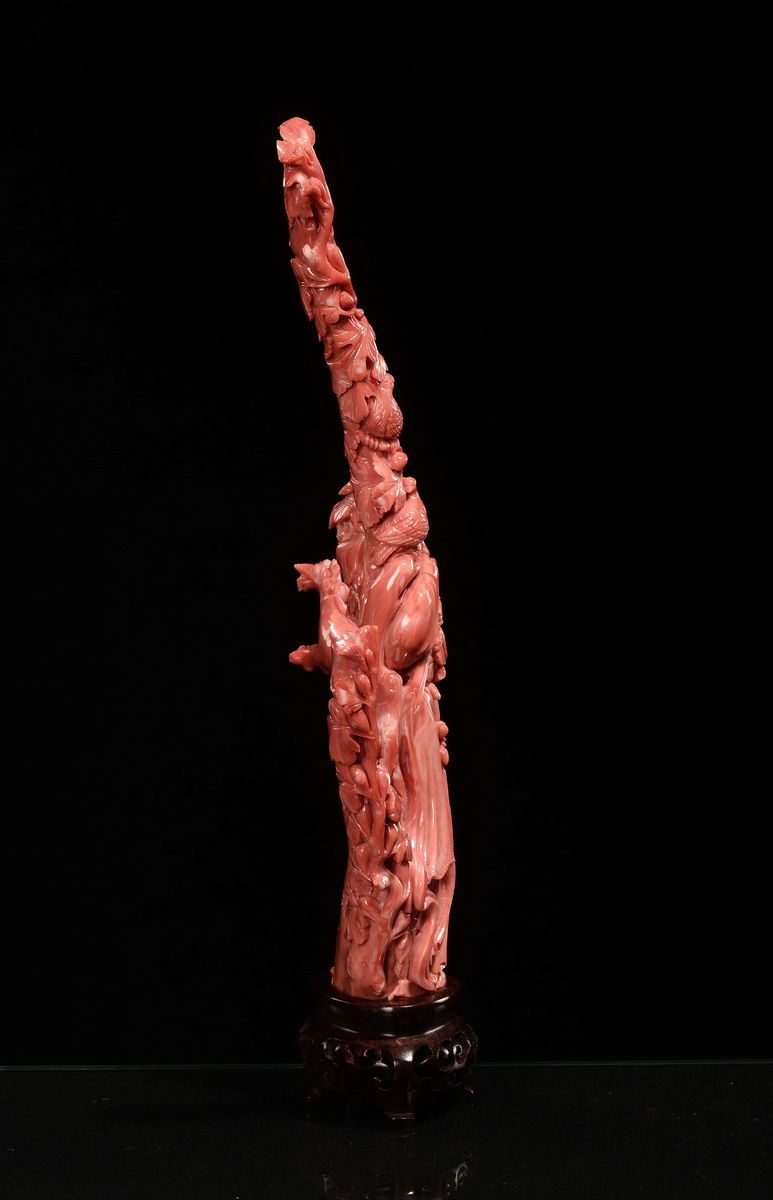 Figura di Guanyin con uccellini in corallo scolpito, Cina, Dinastia Qing, fine XIX secolo