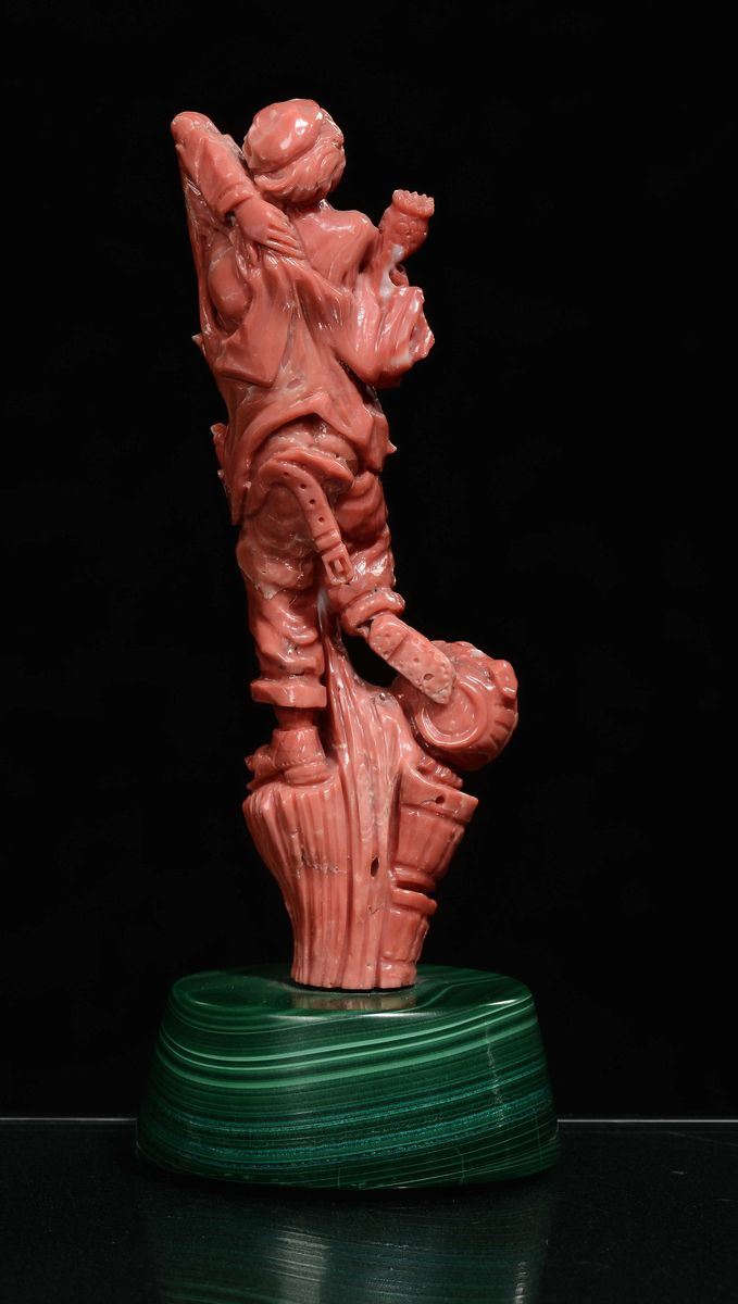 Giovane con botte in corallo su base di malachite, Cina, Dinastia Qing, inizio XX secolo