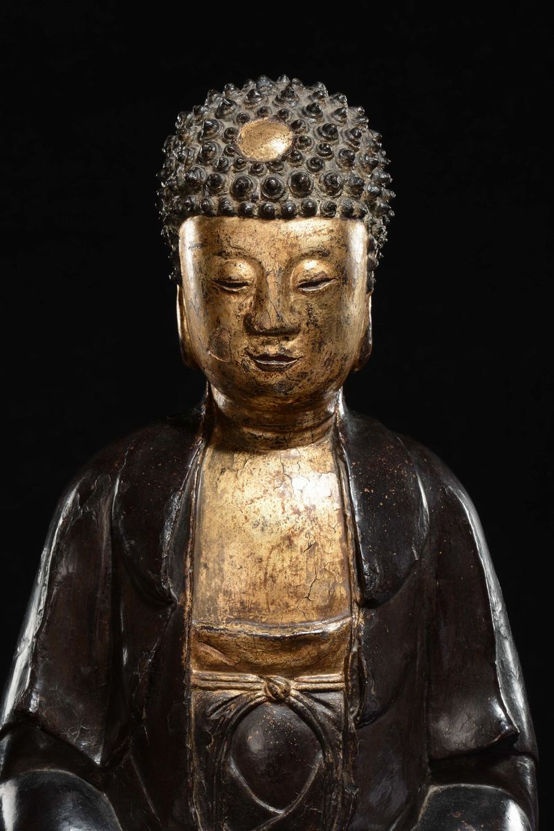 Grande Buddha in bronzo laccato e dorato, Cina, Dinastia Ming, XVII secolo