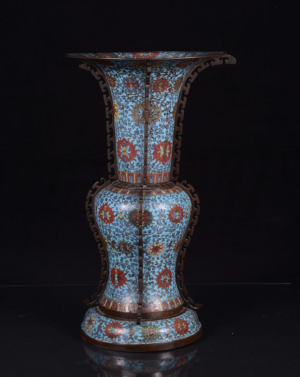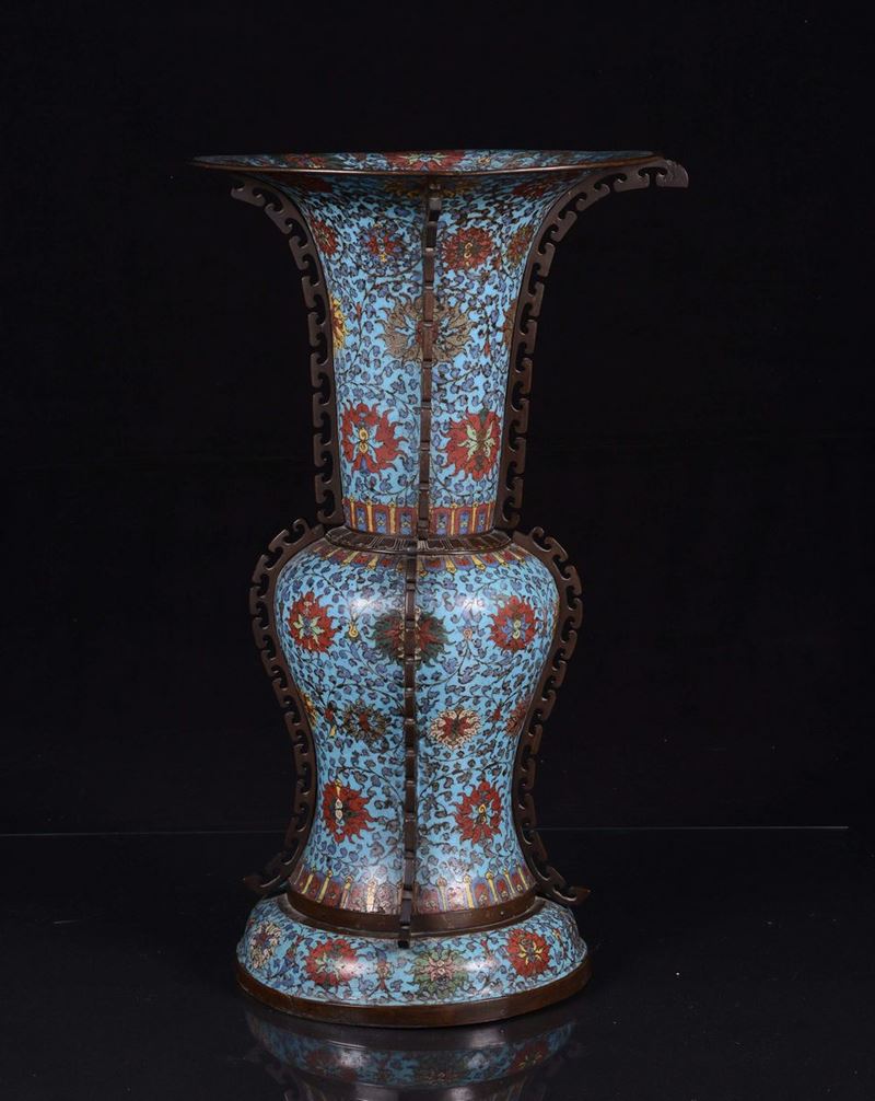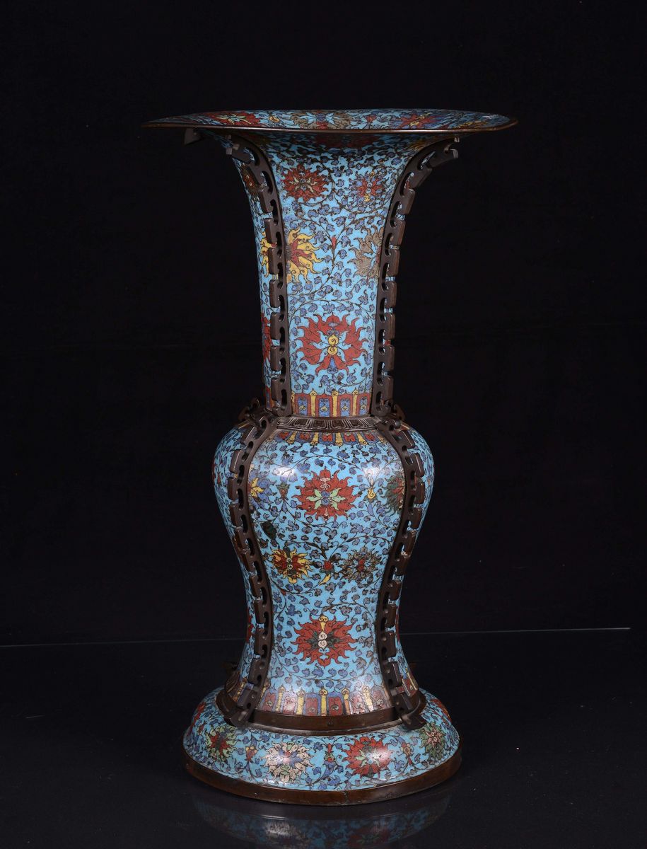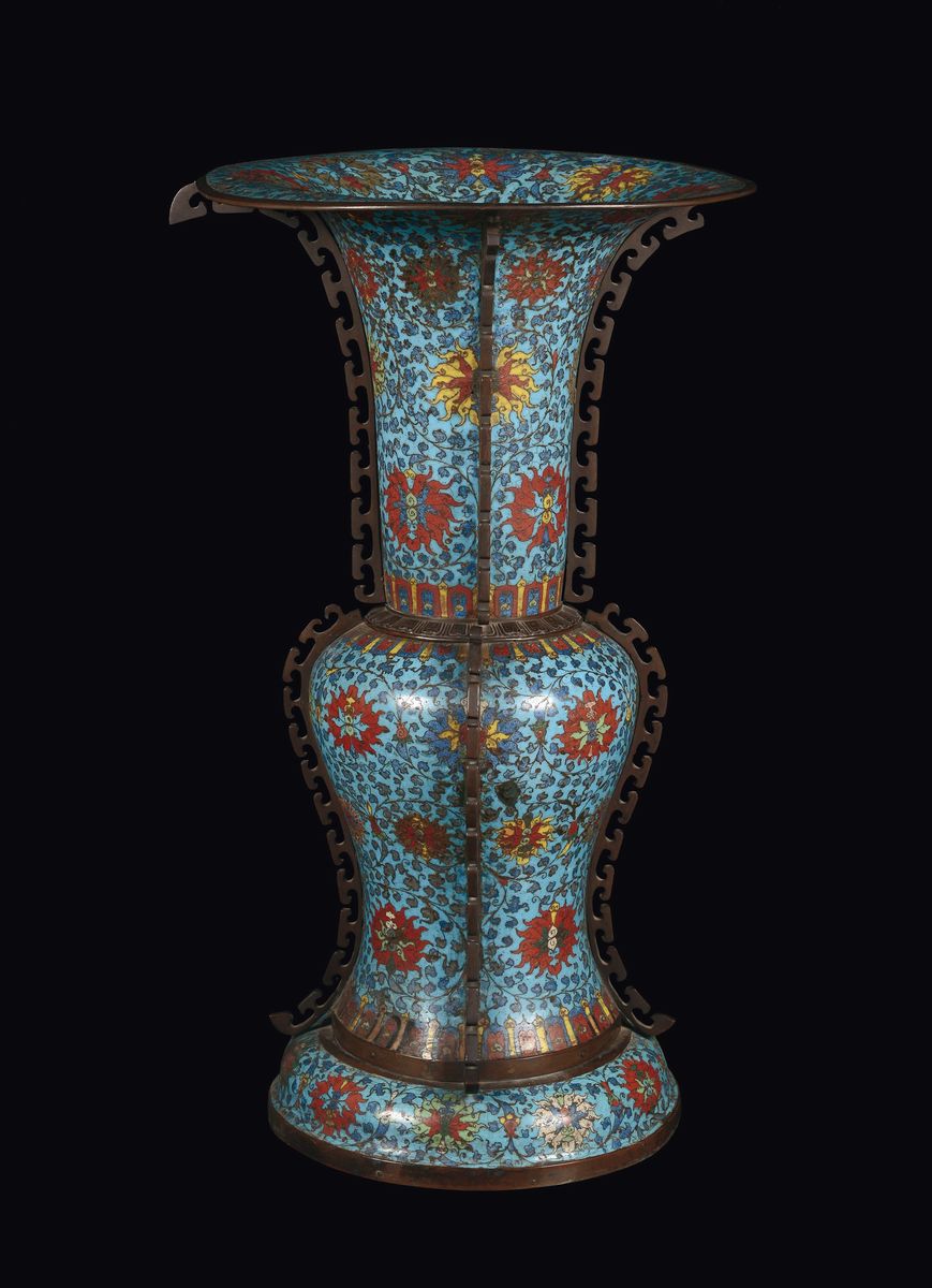 Grande vaso cloisonnè con decori floreali e vegetali, Cina, Dinastia Ming, XVII secolo