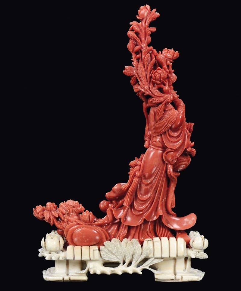 Gruppo in corallo con due Guanyin, Cina, Dinastia Qing, fine XIX secolo