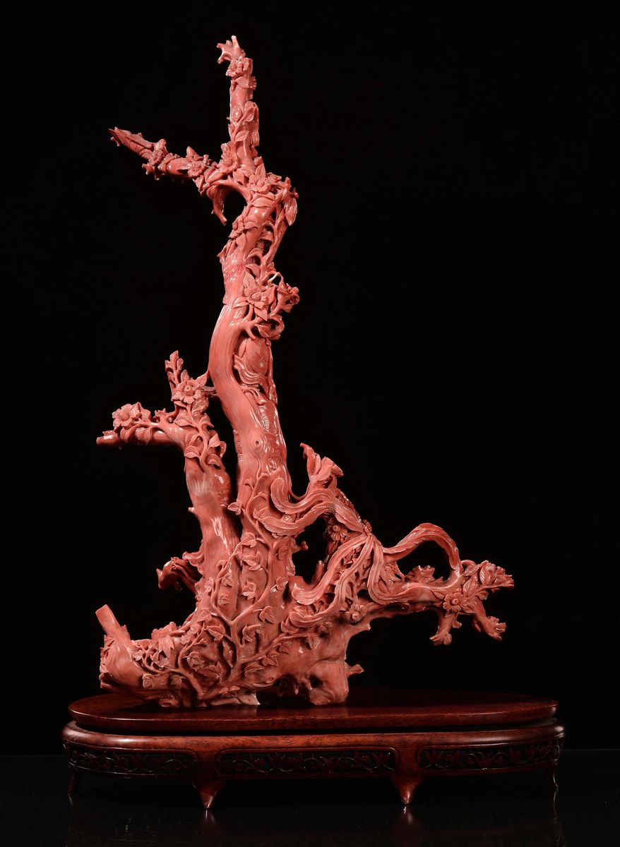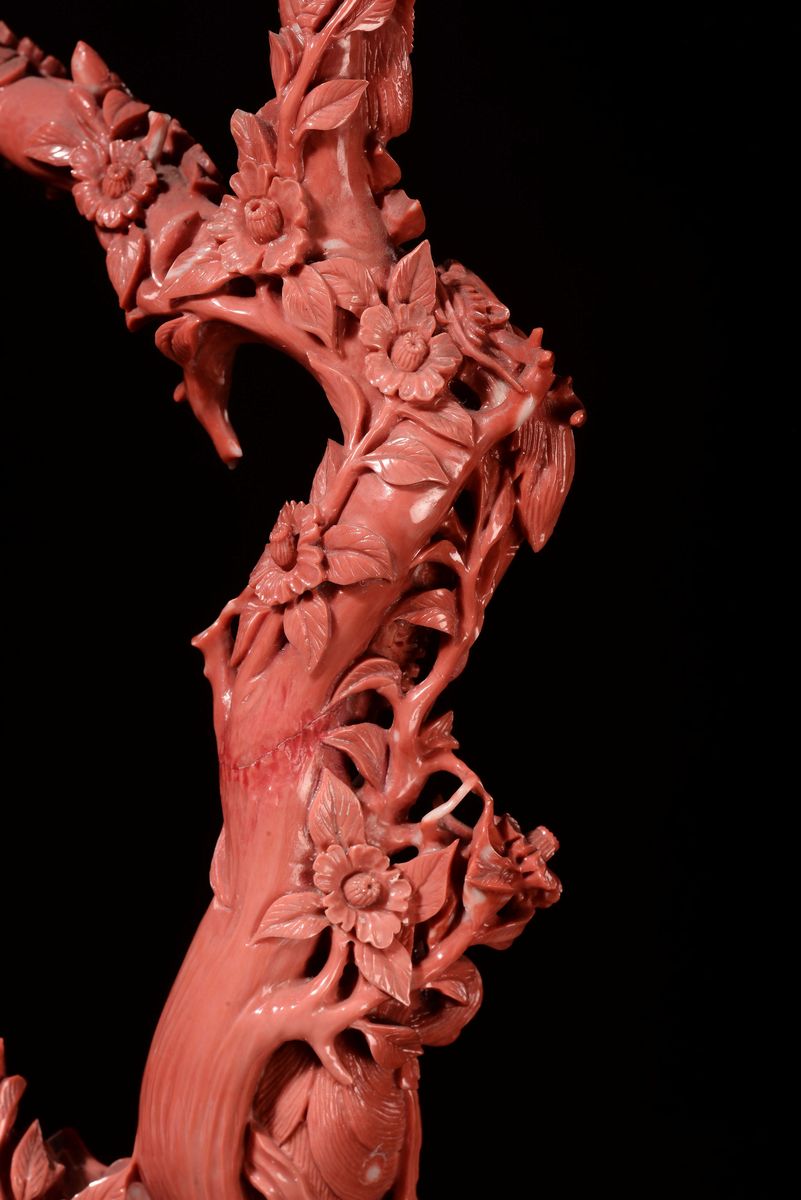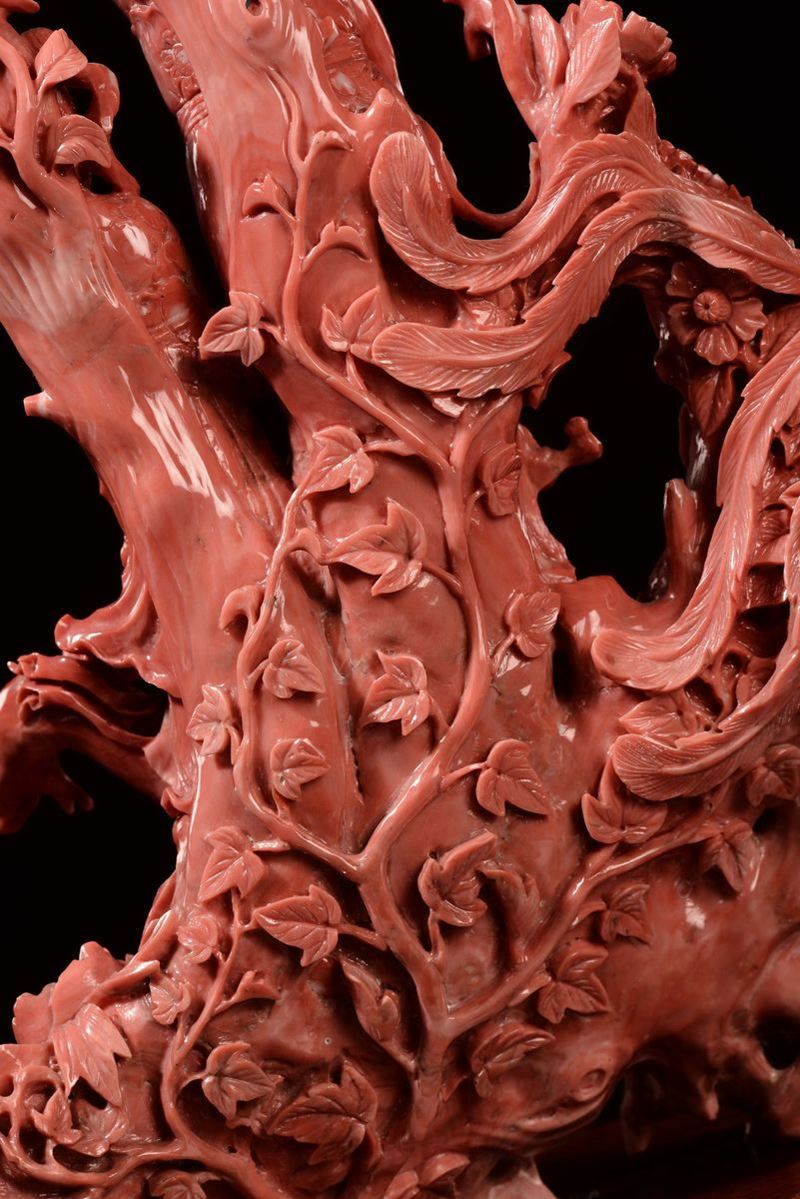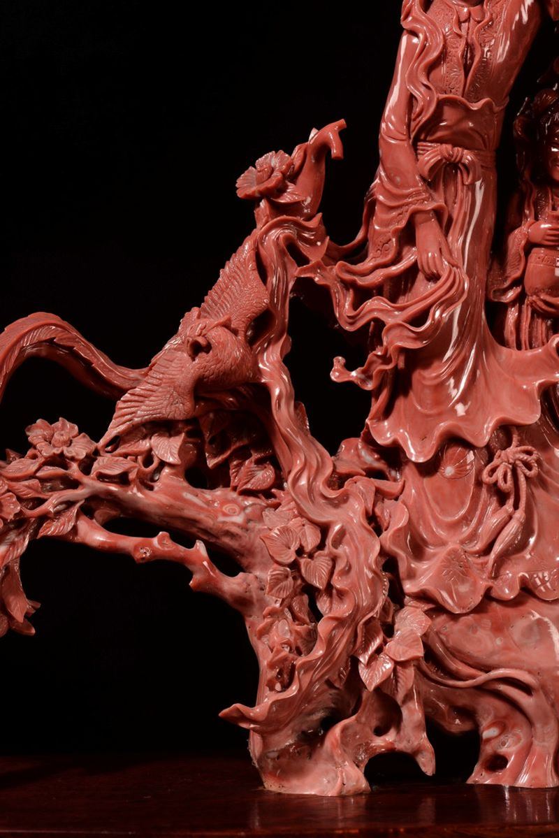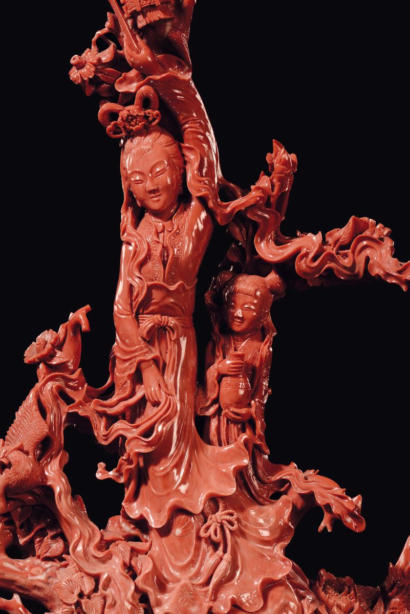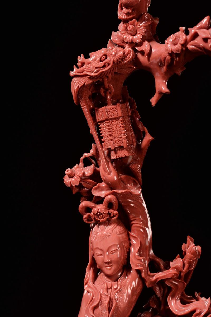 Gruppo in corallo raffigurante Guanyin con bambina, Cina, Dinastia Qing, fine XIX secolo