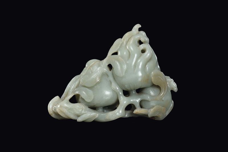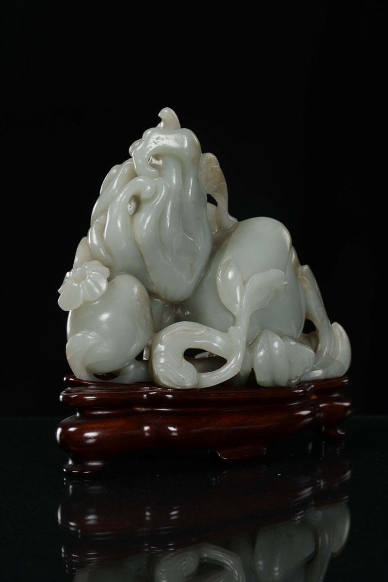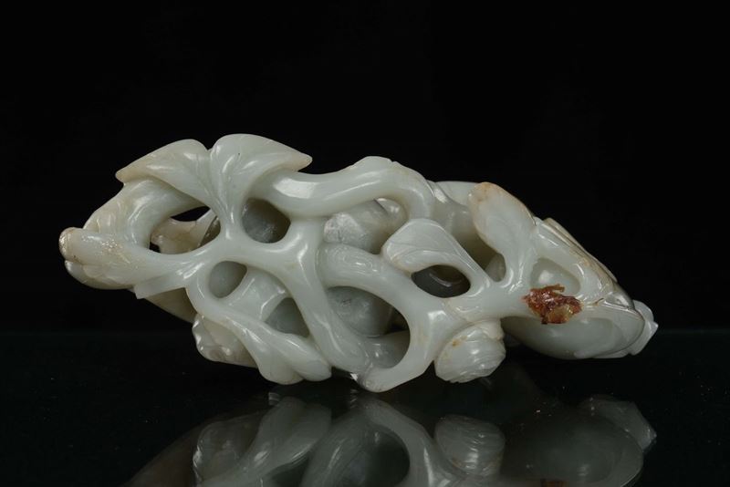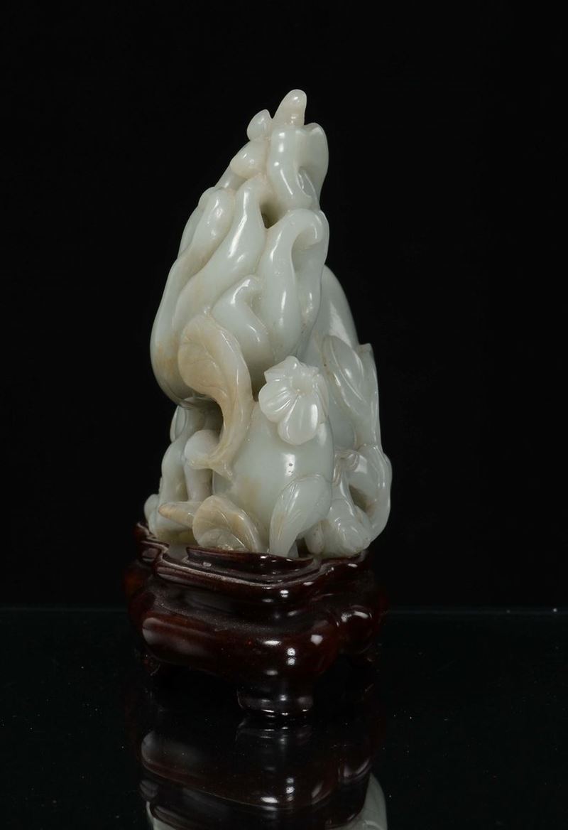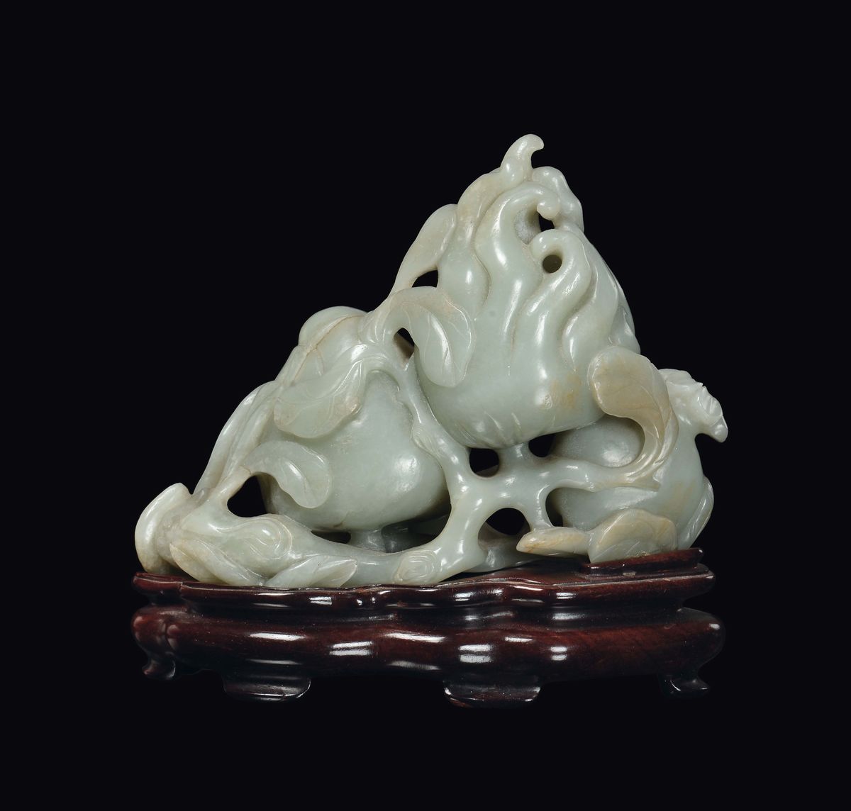 Gruppo in giada bianca Celadon a forma di Mano di Buddha, Cina, Dinastia Qing, periodo Qianlong (1736-1796)