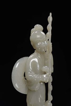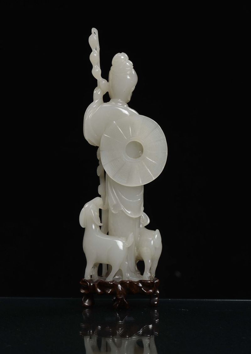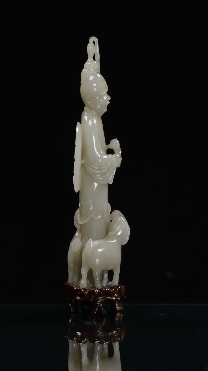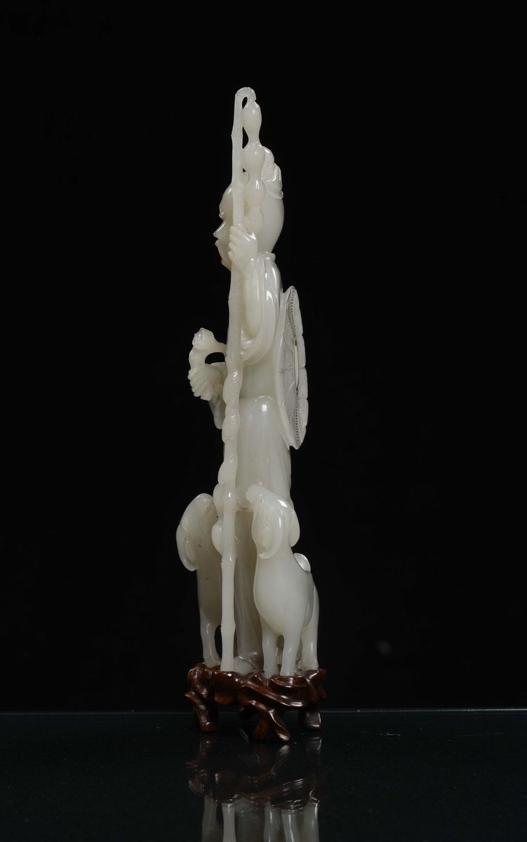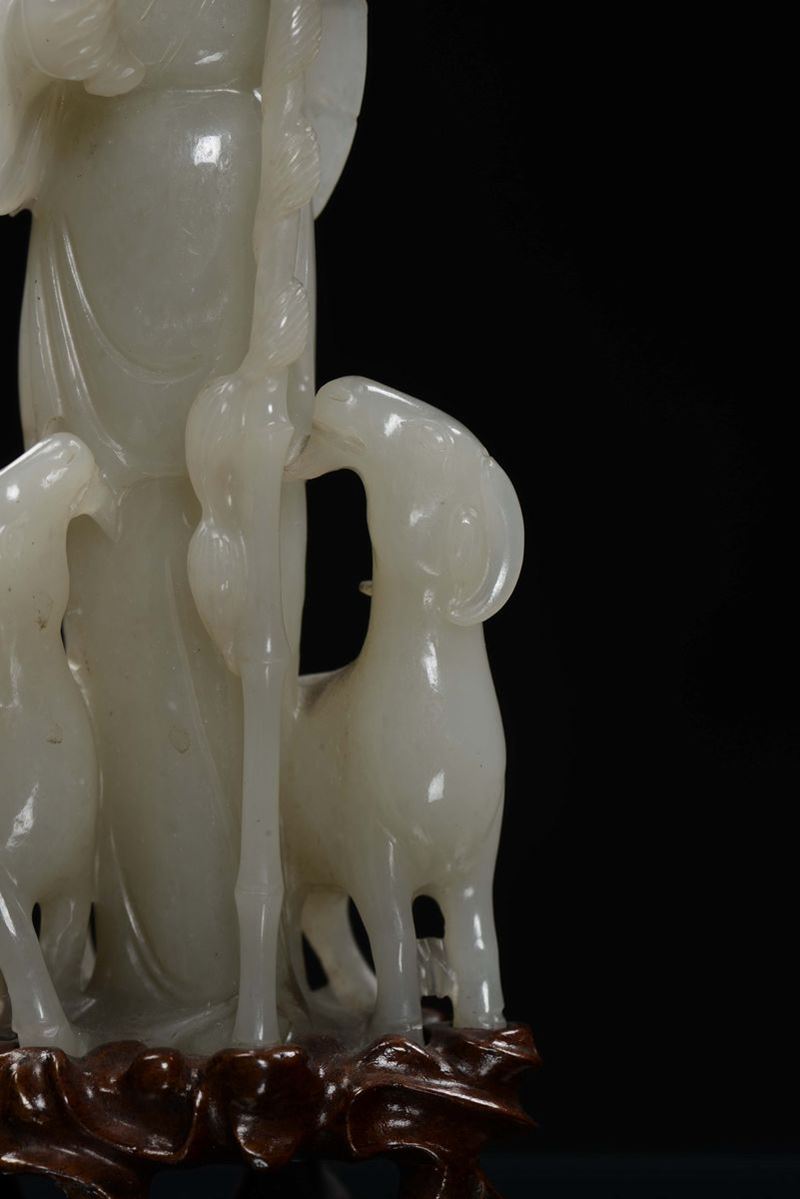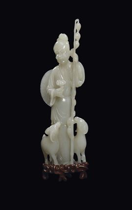 Gruppo in giada bianca raffigurante saggio con due capre, Cina, Dinastia Qing, XIX secolo