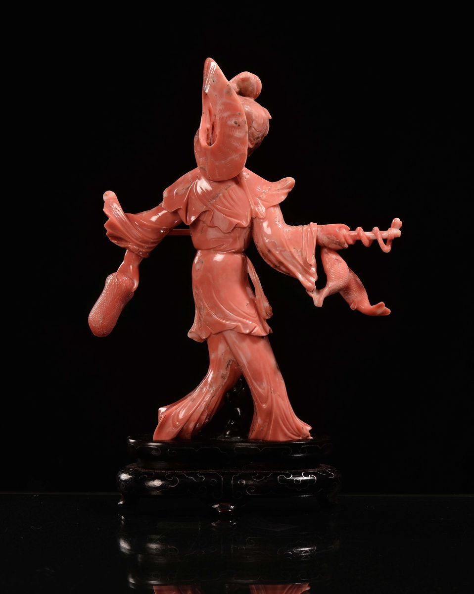 Guanyin in corallo con canna da pesca e pesce, Cina, Dinastia Qing, inizio XX secolo