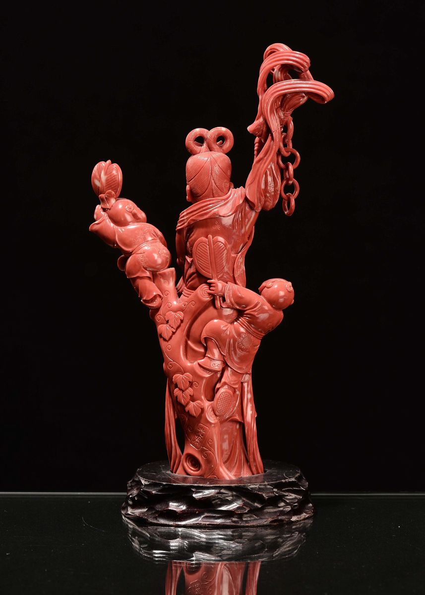 Guanyin in corallo rosso con bambini, Cina, Dinastia Qing, fine XIX secolo