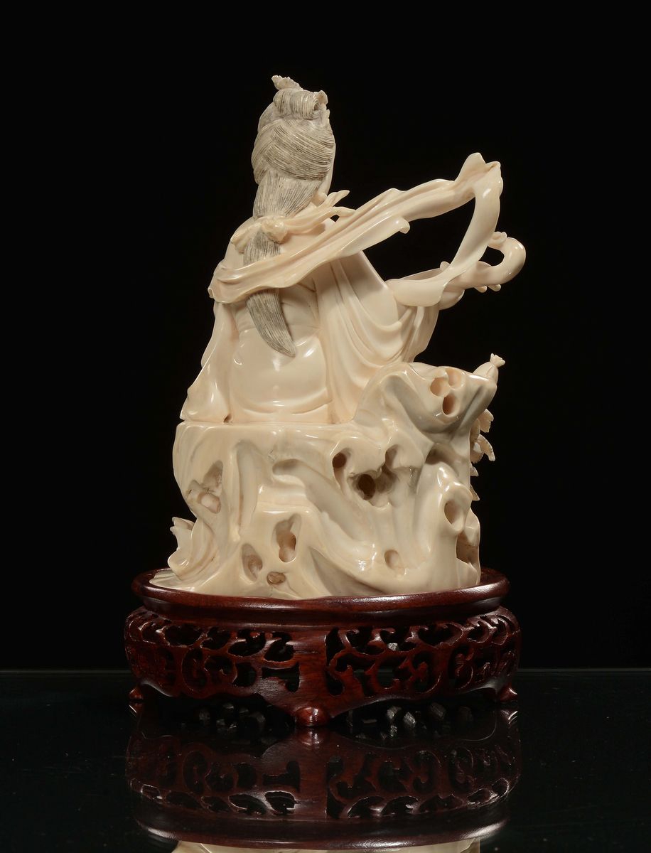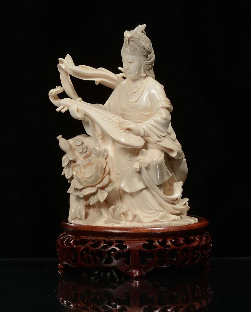 Guanyin suonatrice in avorio, Cina, Repubblica, inizio XX secolo