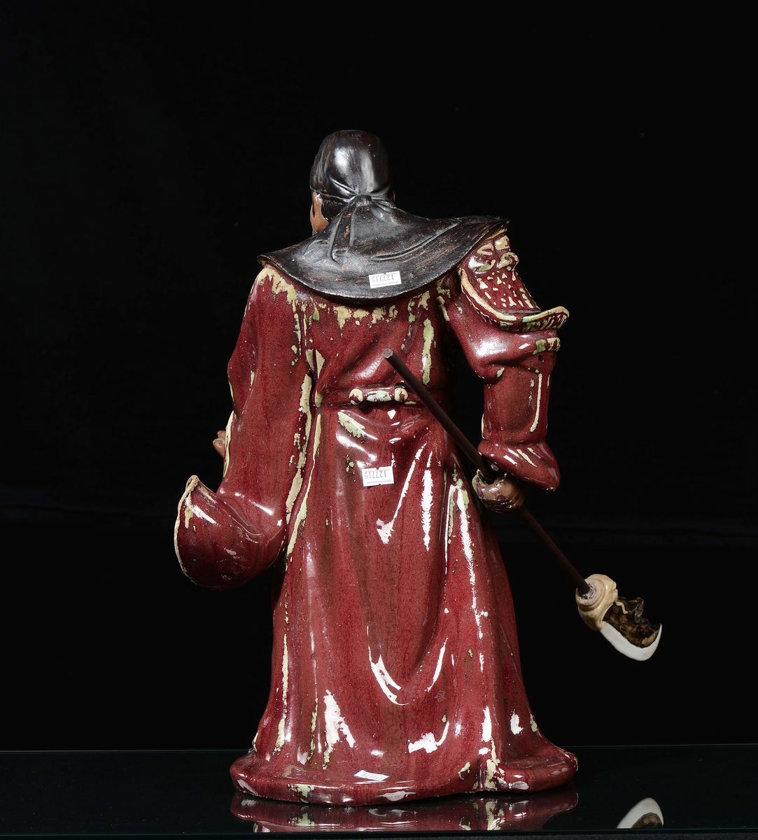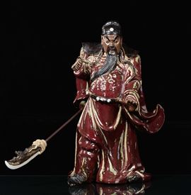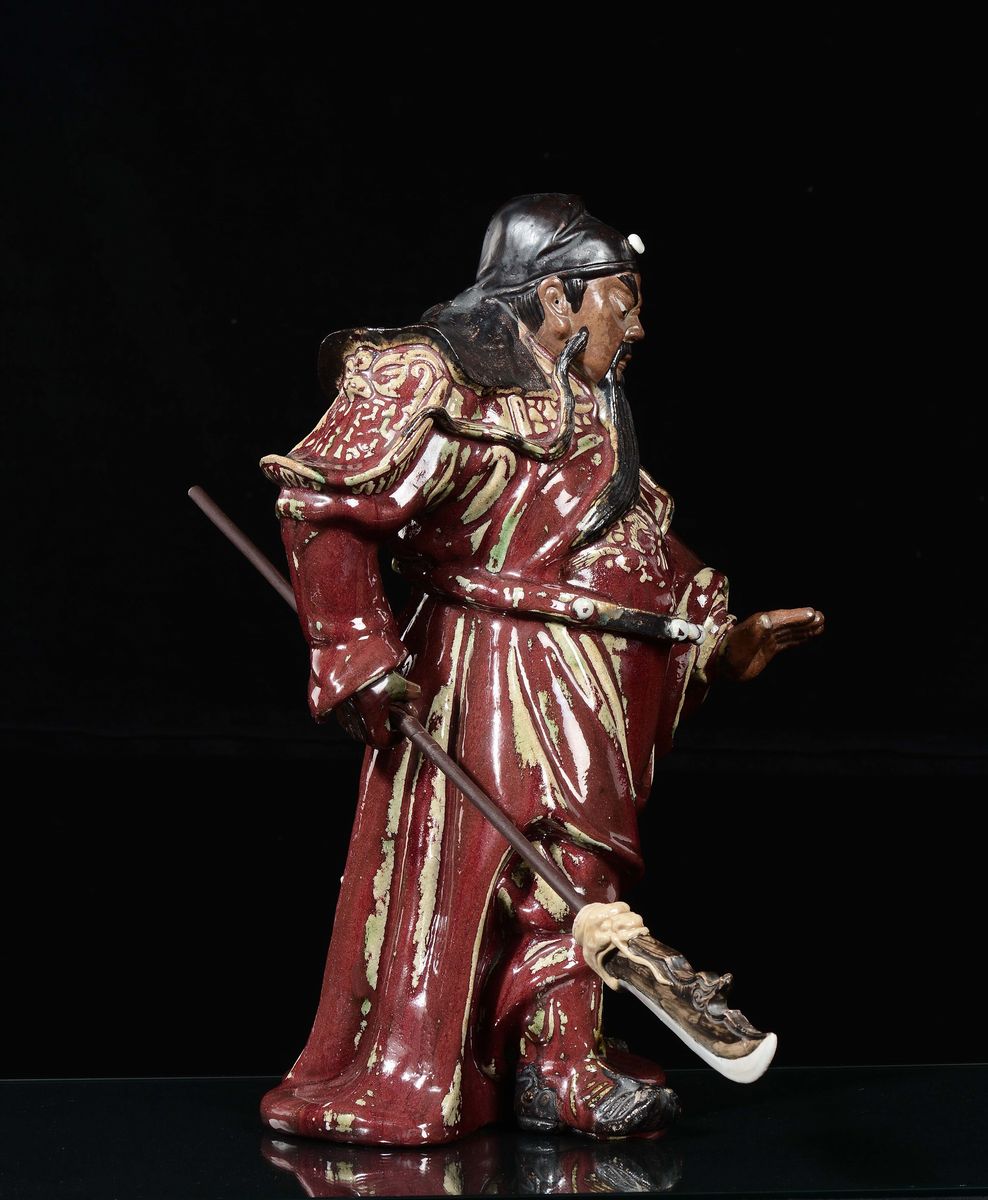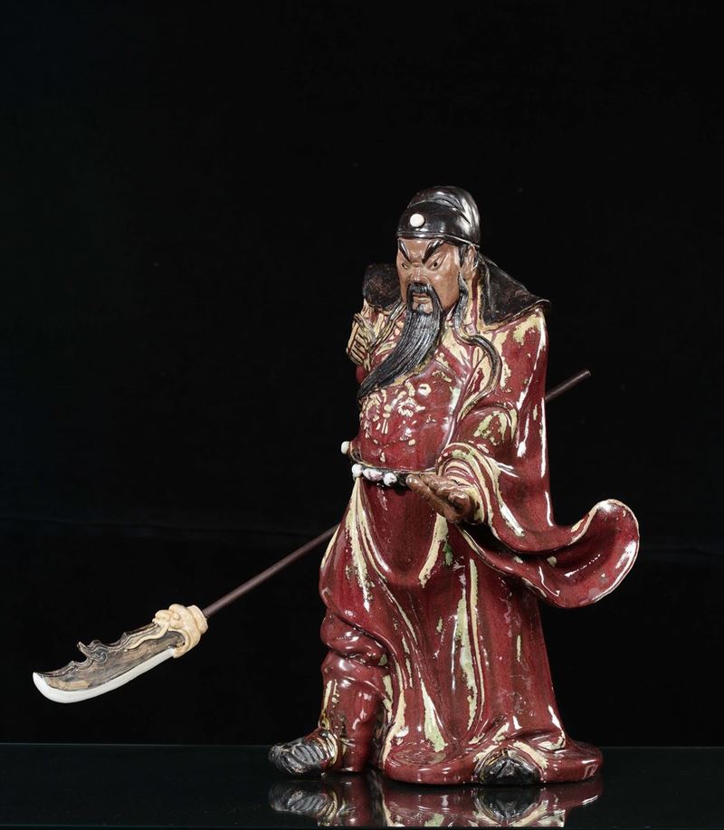 Guerriero con spada in terracotta smaltata in monocromia rosso ferro flambè, Cina, Dinastia Qing, fine XIX secolo