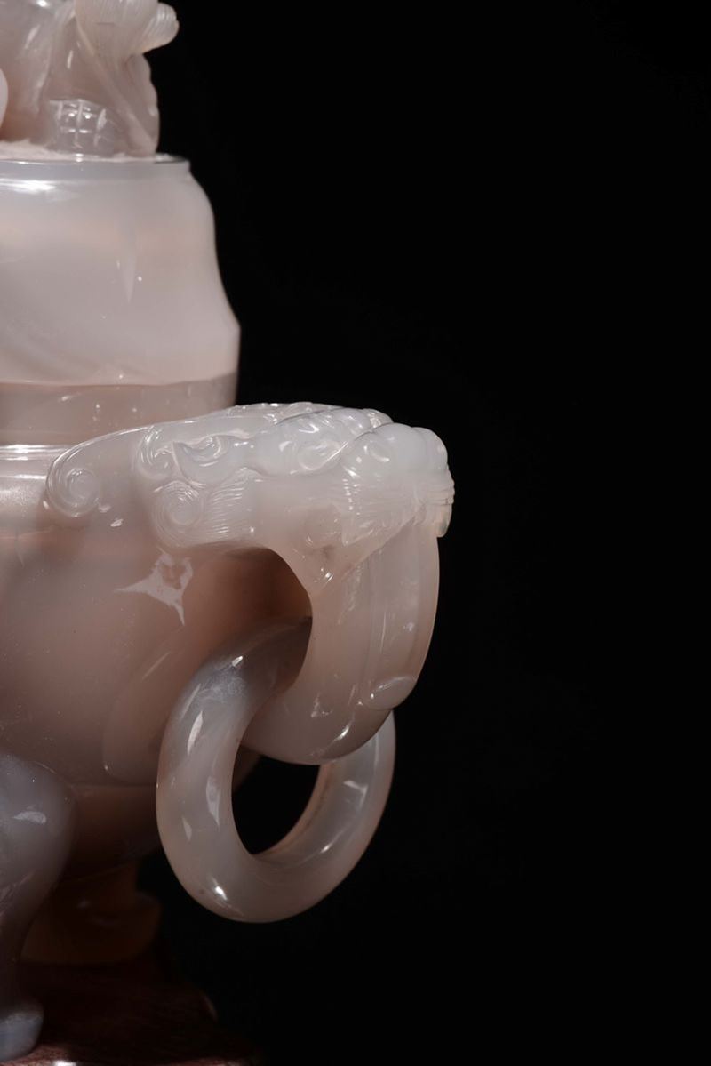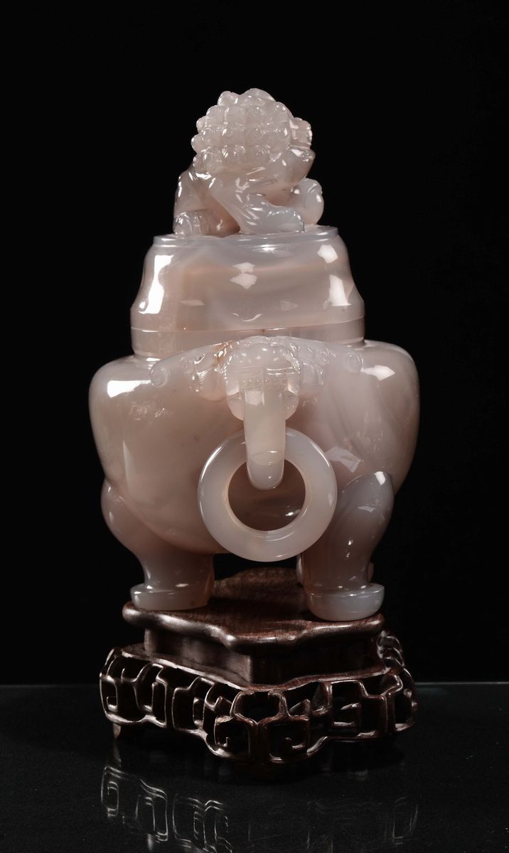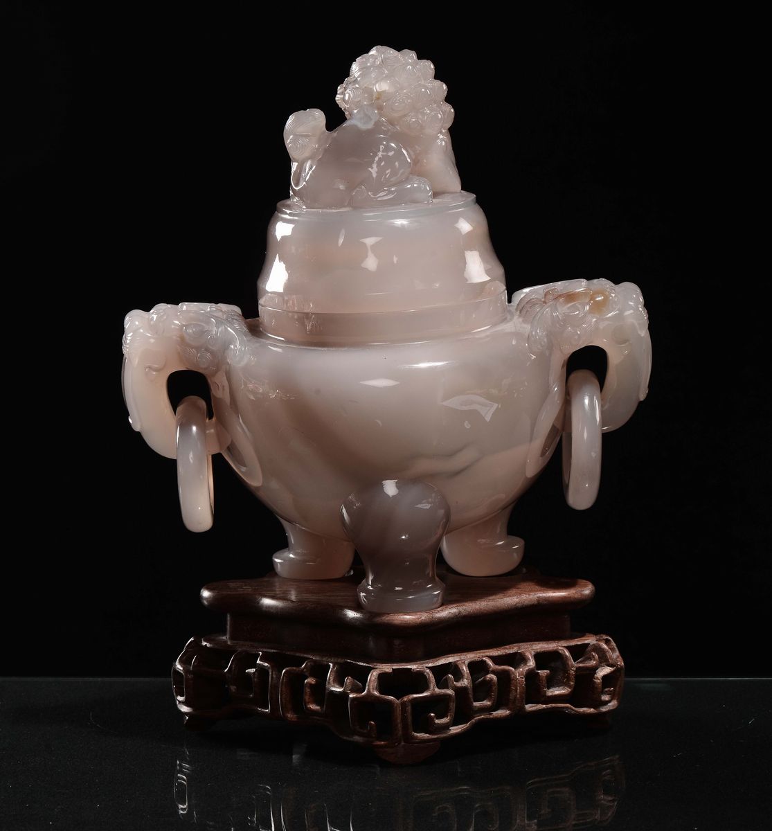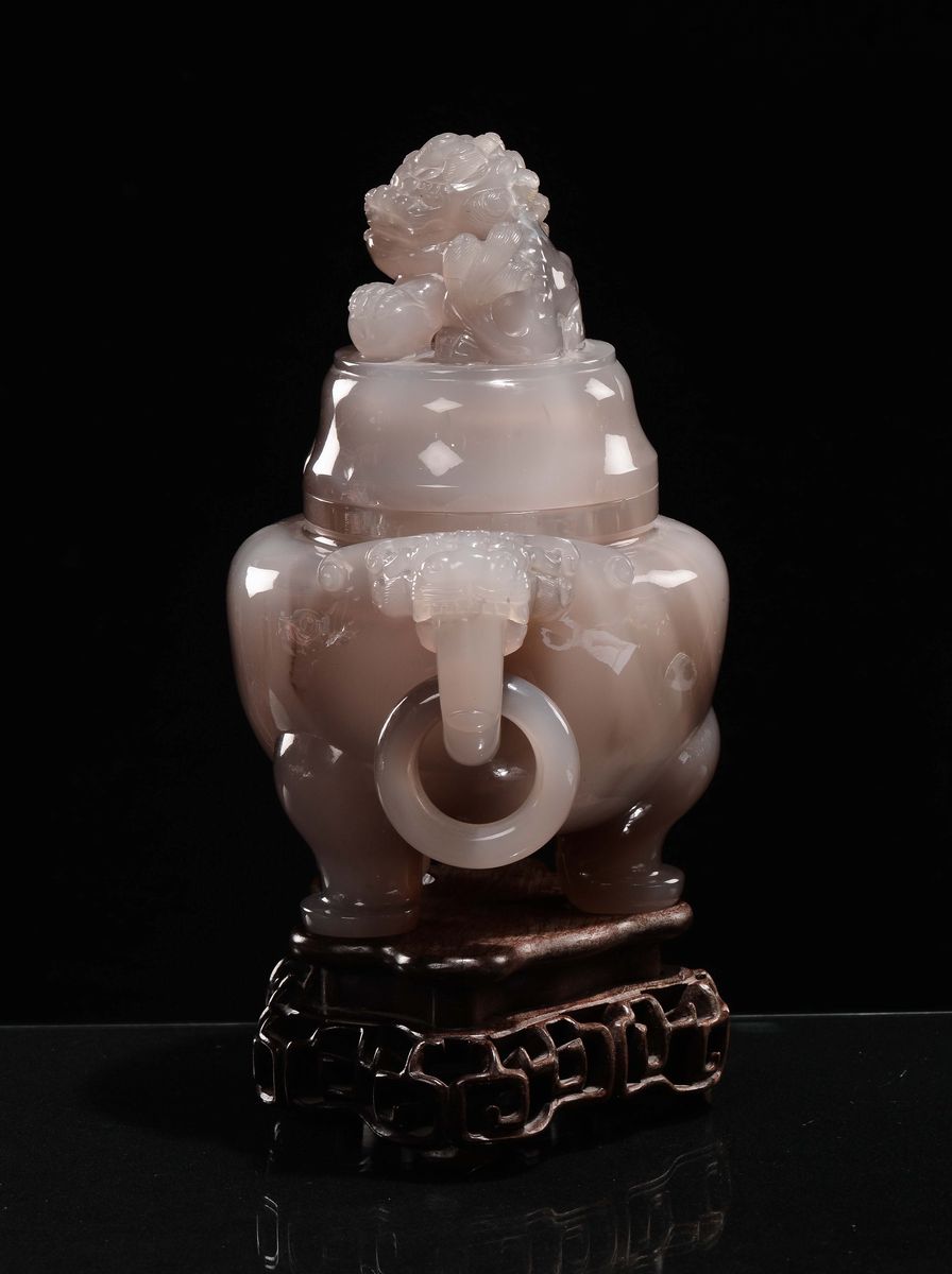 Incensiere in agata con coperchio sormontato da cane di Pho, Cina, Dinastia Qing, XIX secolo