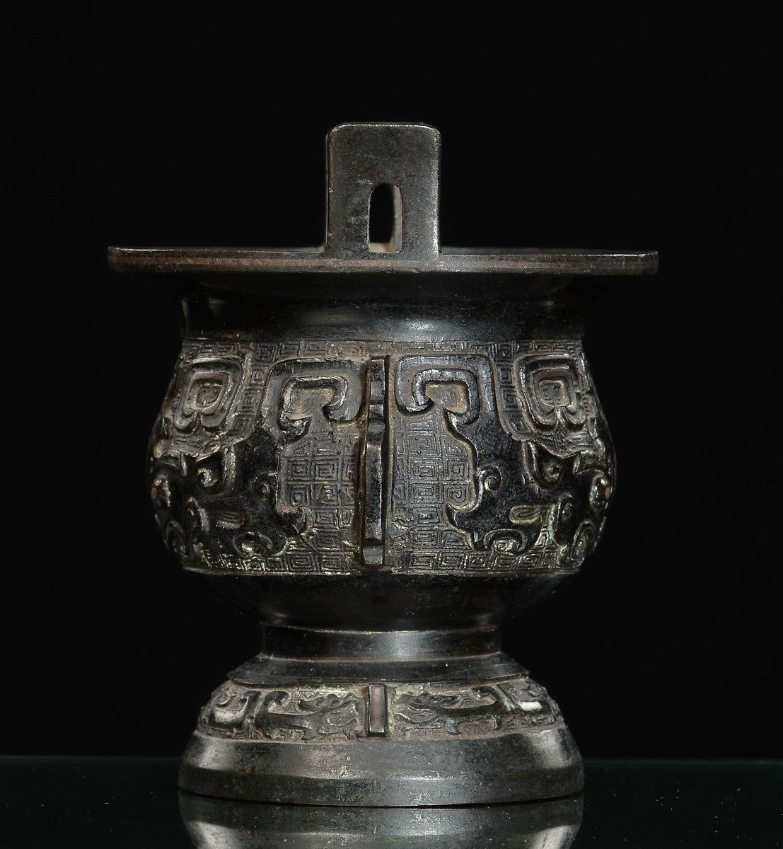 Incensiere in bronzo a due anse di forma arcaica con maschera di Taotie, Cina, Dinastia Ming, XVII secolo