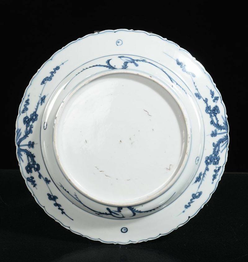 Raro piatto in porcellana bianca e blu con decoro di animali fantastici, Cina, Dinastia Ming. epoca Jiajing (1522-1566)