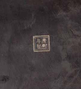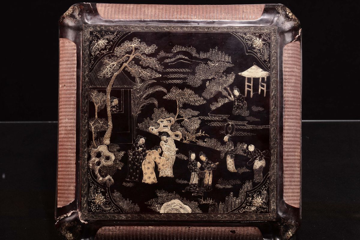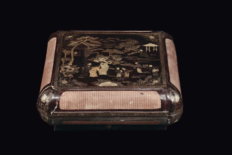 Scatola in lacca a paesaggio e figure, marca e del periodo Kangxi (1654-1722)