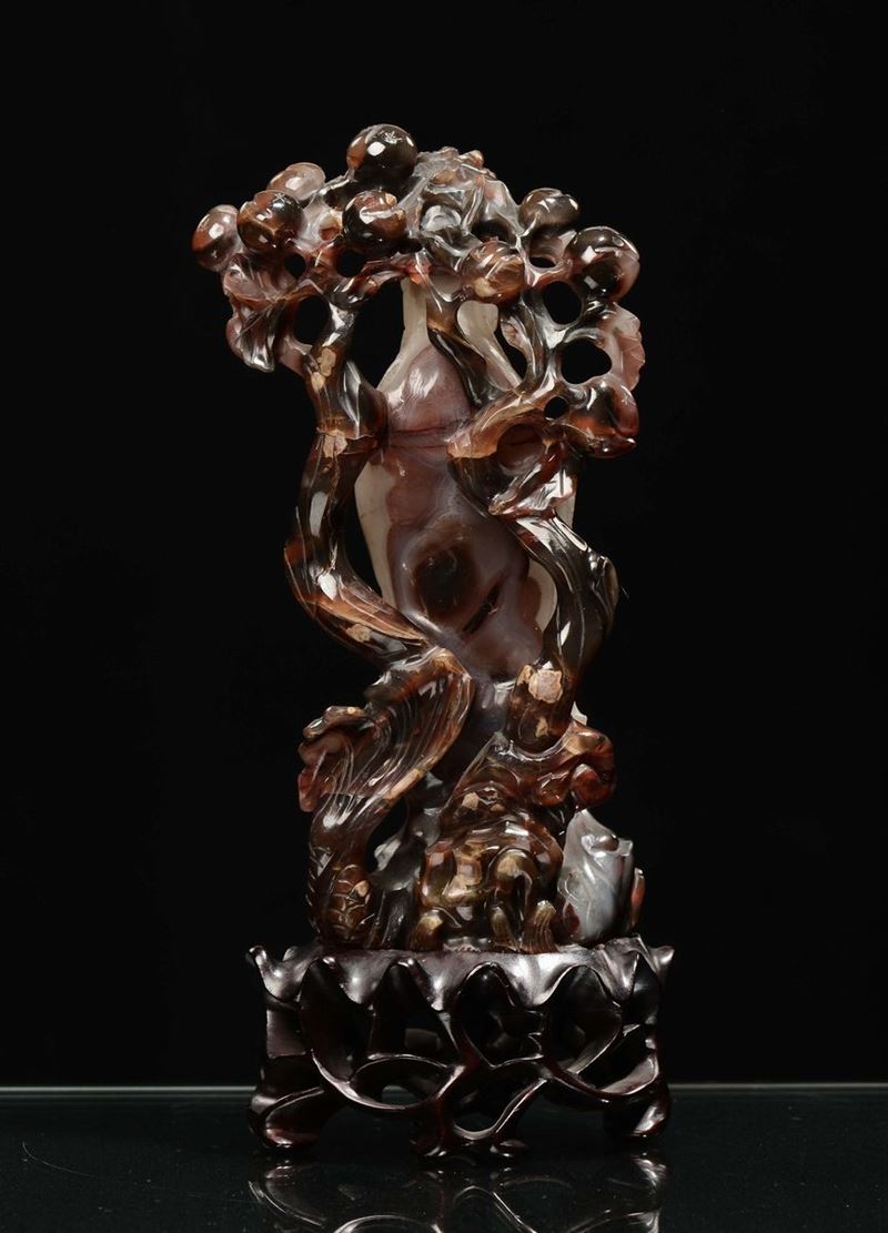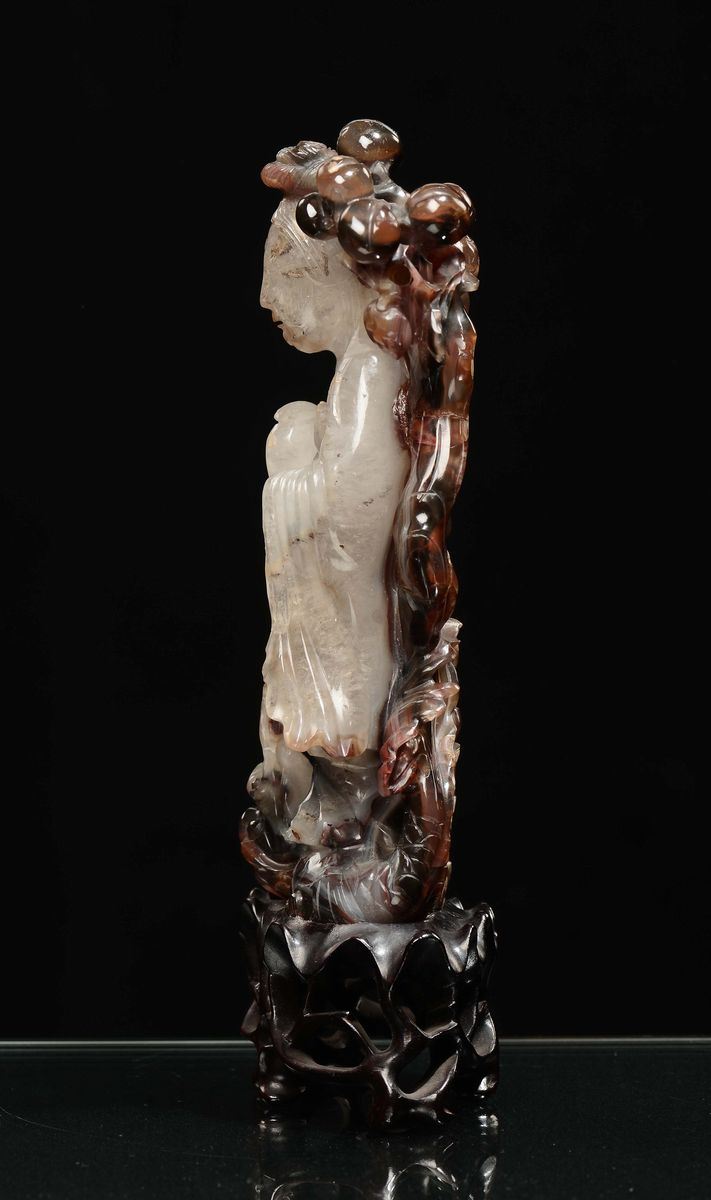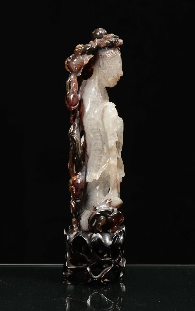 Scultura in agata bianca e marrone raffigurante Guanyin, Cina, Repubblica, XX secolo