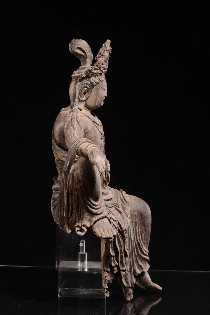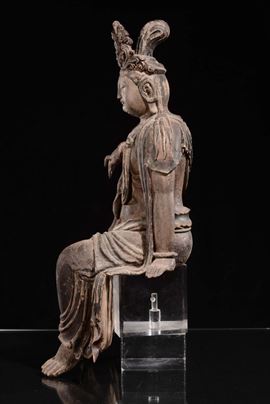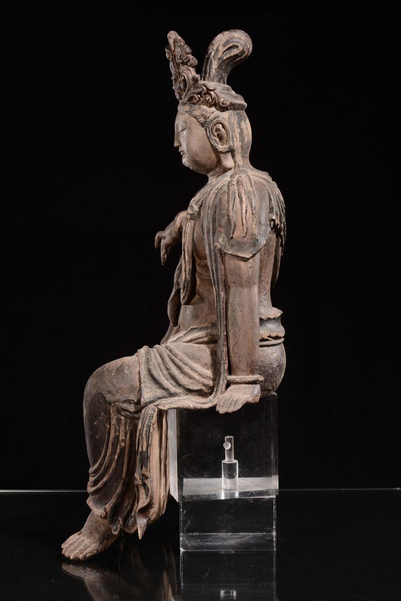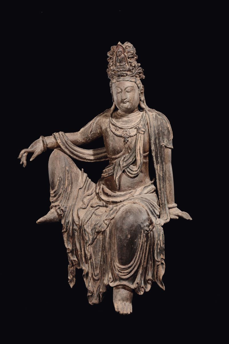 Scultura in legno di Guanyin seduta, Cina, Dinastia Qing, XIX secolo