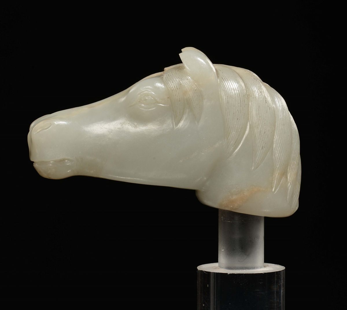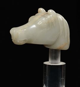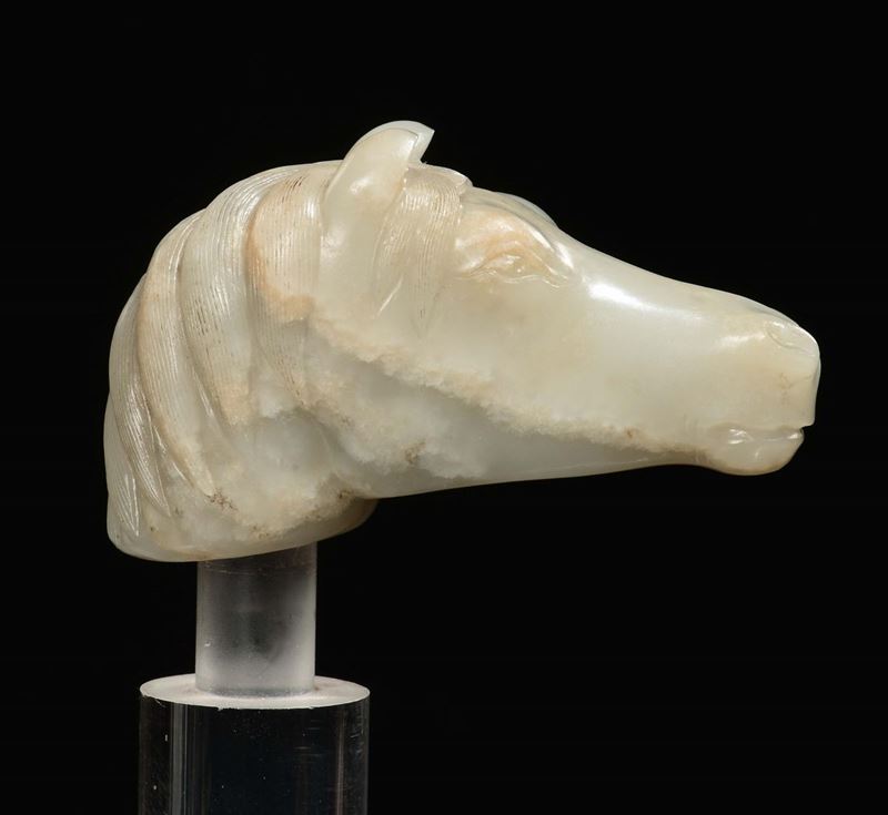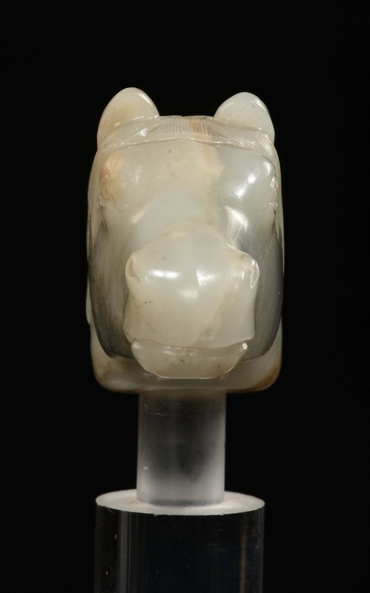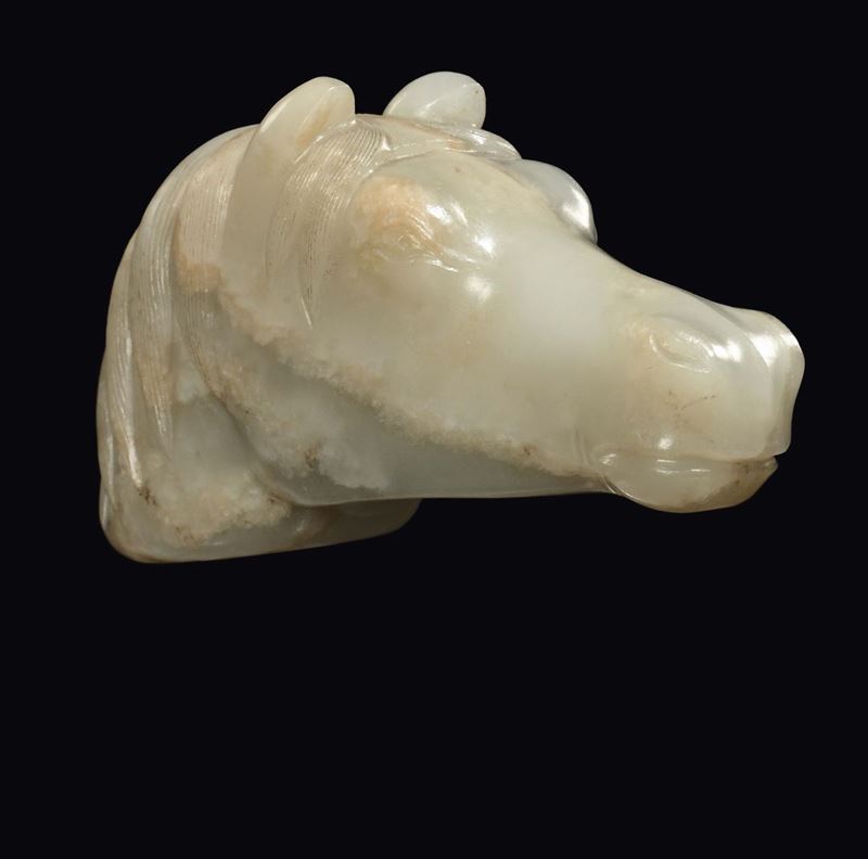 Testa di cavallo scolpita in giada Celadon, Cina, Dinastia Qing, epoca Qianlong (1736-1796)