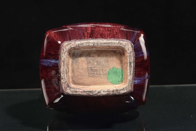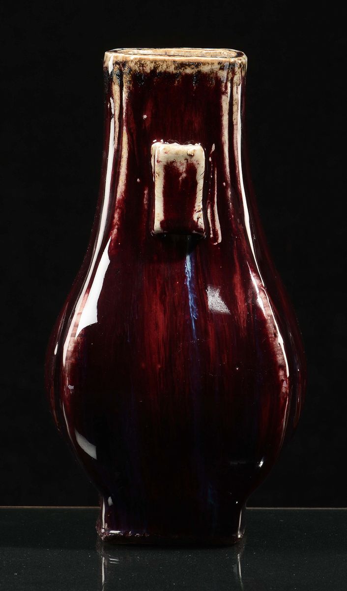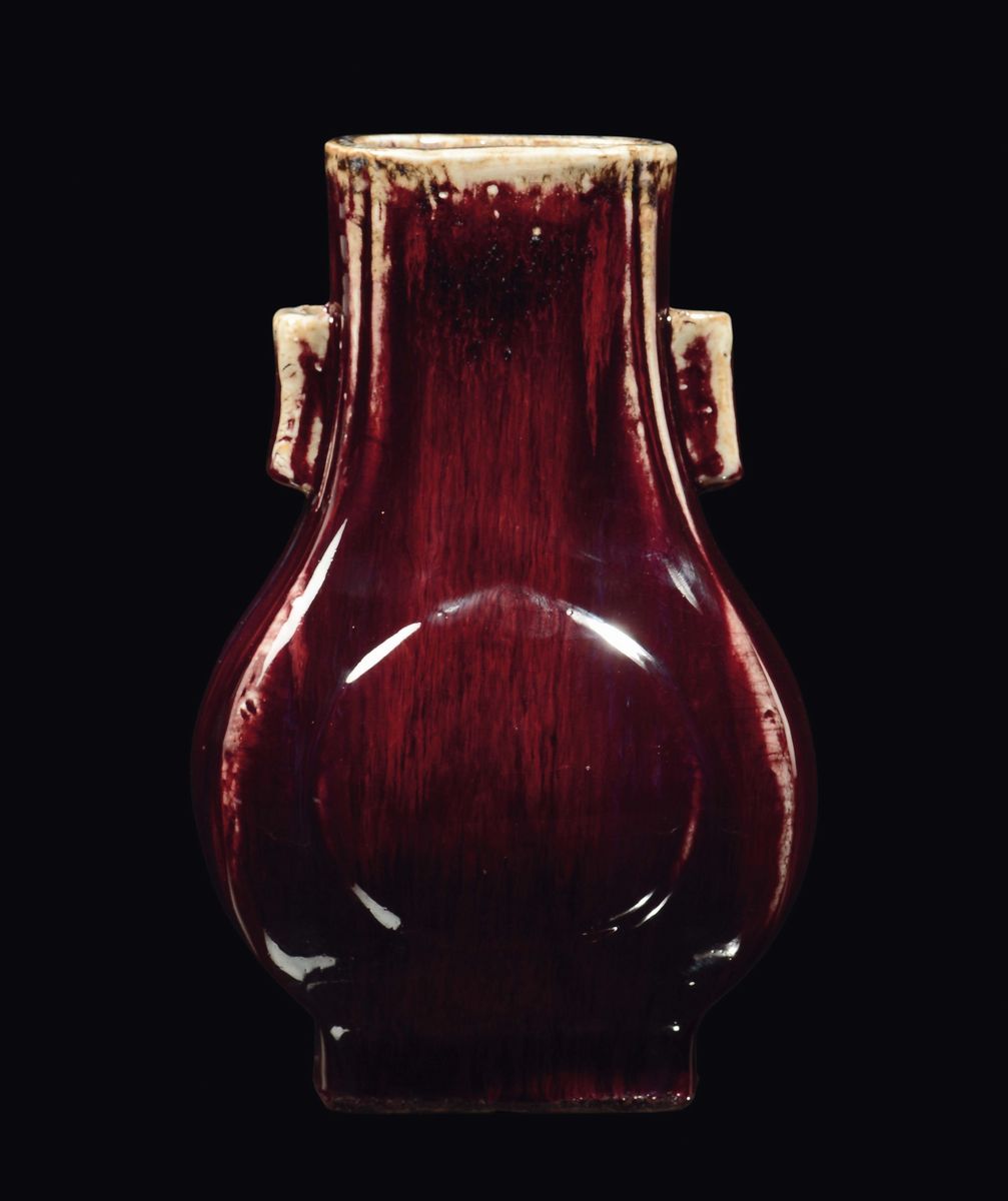 Vaso in porcellana a doppia ansa con decoro flambè sui toni del rosso, Cina, Dinastia Qing, fine XIX secolo