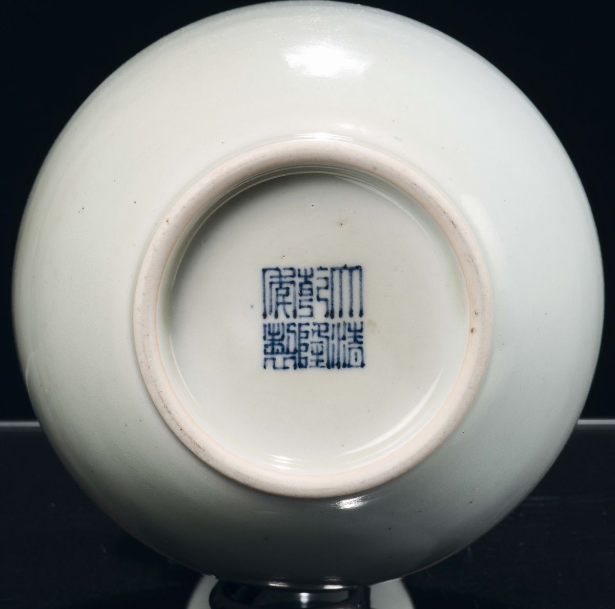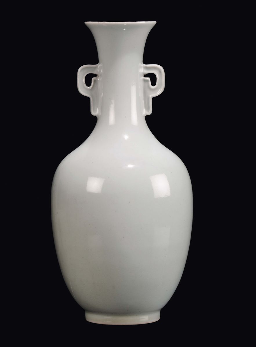 Vaso in porcellana a due anse Claire de Lune, Cina, Dinastia Qing, marca e del periodo Qianlong (1736-1796)